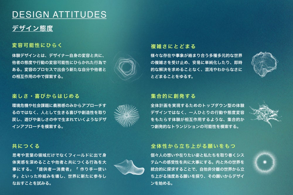 産業システム側の対応だけでなく、暮らしや生活者側での変革が求められる中、UXや体験デザインはどのような役割を果たしていくことができるのか。「提供者ー消費者」「作り手ー使い手」といった従来の硬直的な関係だけでなく、一人ひとりの暮らしや行動の変容が促されていくような、より包括的で深いレベルでのトランジションはどのように起こせるのか。