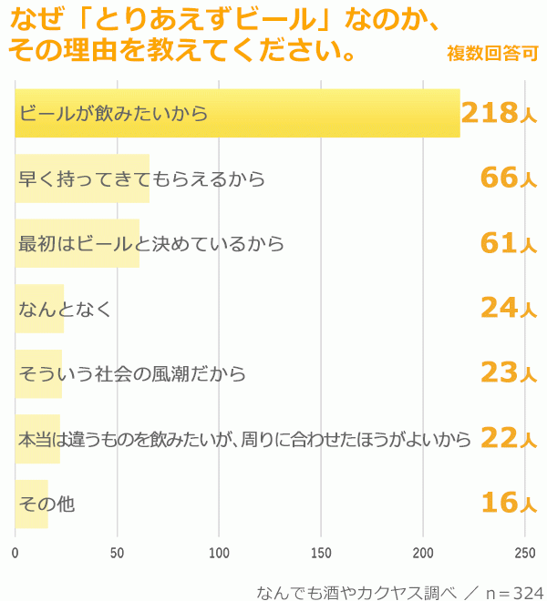 とにもかくにも、飲み会の席で「とりあえずビール」と注文してしまうのは、忘年会同様、日本人を語る上で欠かせない習慣といえそうです。