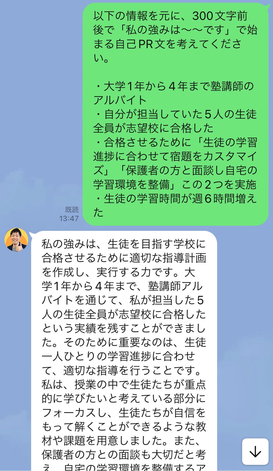 アピールしたい内容を箇条書きで送れば、文章に落とし込める。