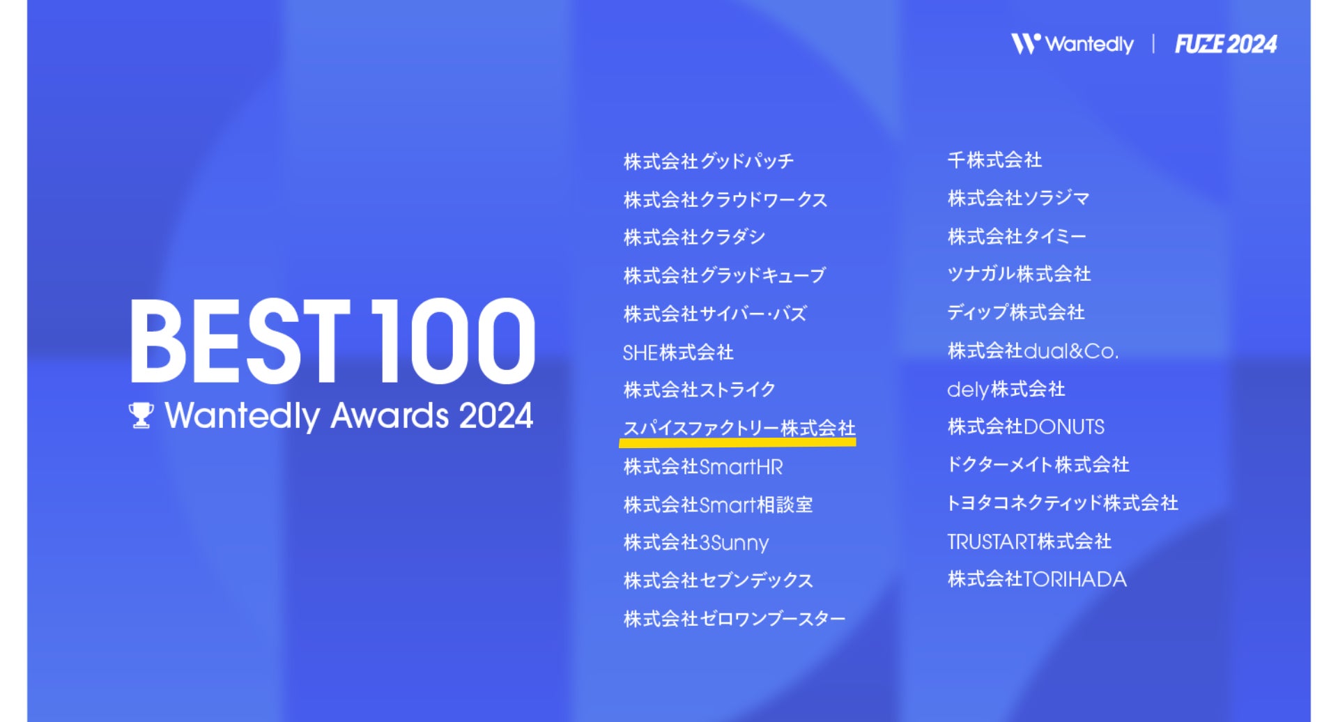 スパイスファクトリー、『Wantedly Awards 2024』 約40,000社の中からBEST 100に選出