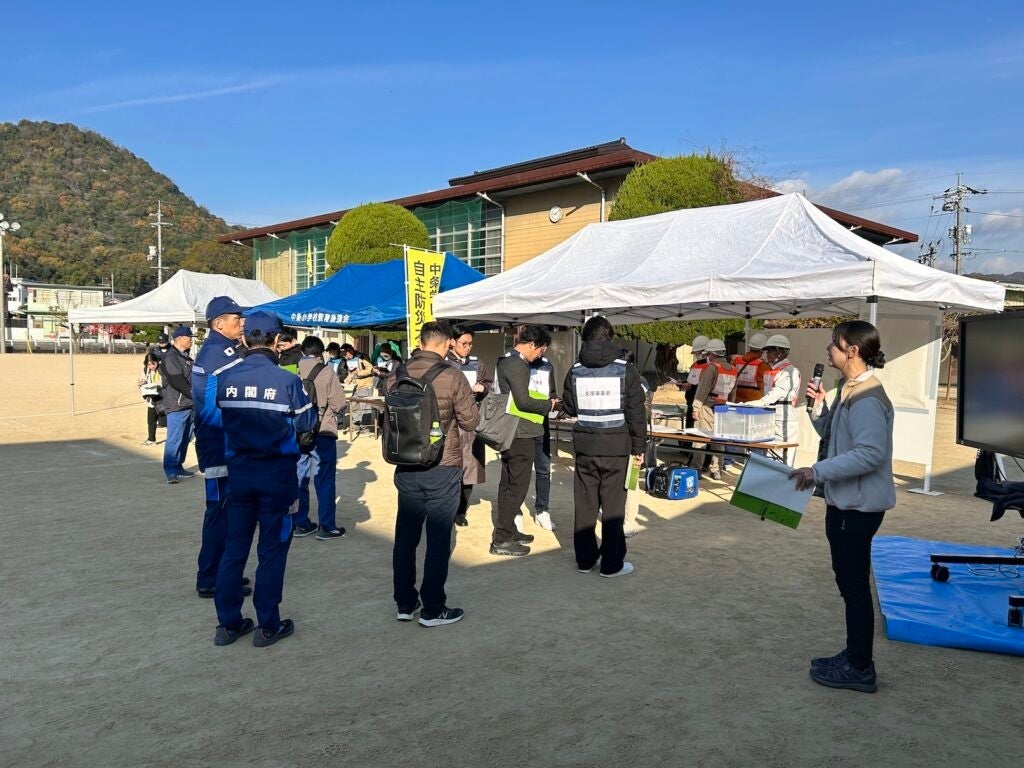 広島県福山市中条学区は、山間部に位置する三谷地区が地震・豪雨時に孤立するリスクを抱えています。この地理的条件を踏まえ、内閣府、広島県、福山市と連携し、実際の災害シナリオに基づいた訓練を企画・実施いたしました。