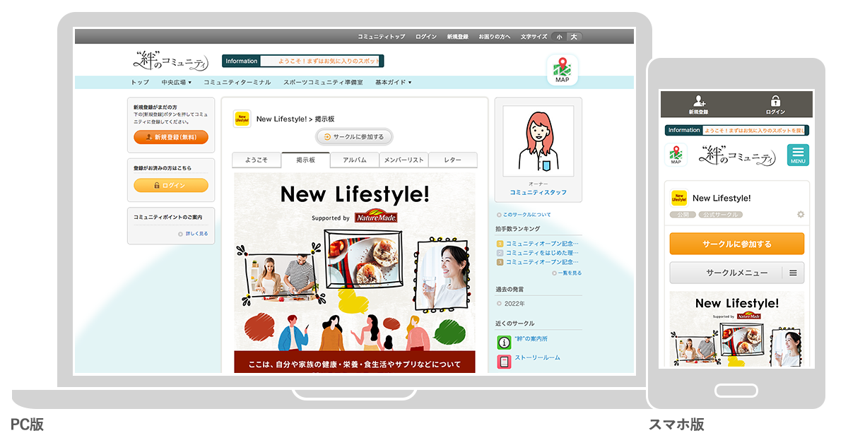 そんなネイチャーメイドがサポートする『New Lifestyle!』コミュニティでは、皆さんと一緒に自分の家族の健康・栄養・食生活・サプリなどについて考えたりお話しする場にしたいと思っています。」