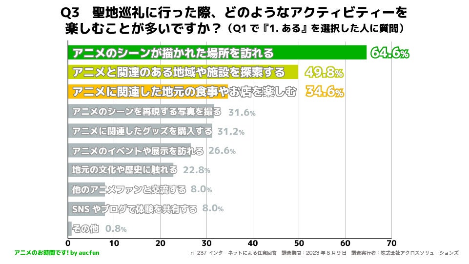 Q3 最も多かった回答が「アニメのシーンが描かれた場所を訪れる」で64.6%という結果になりました。