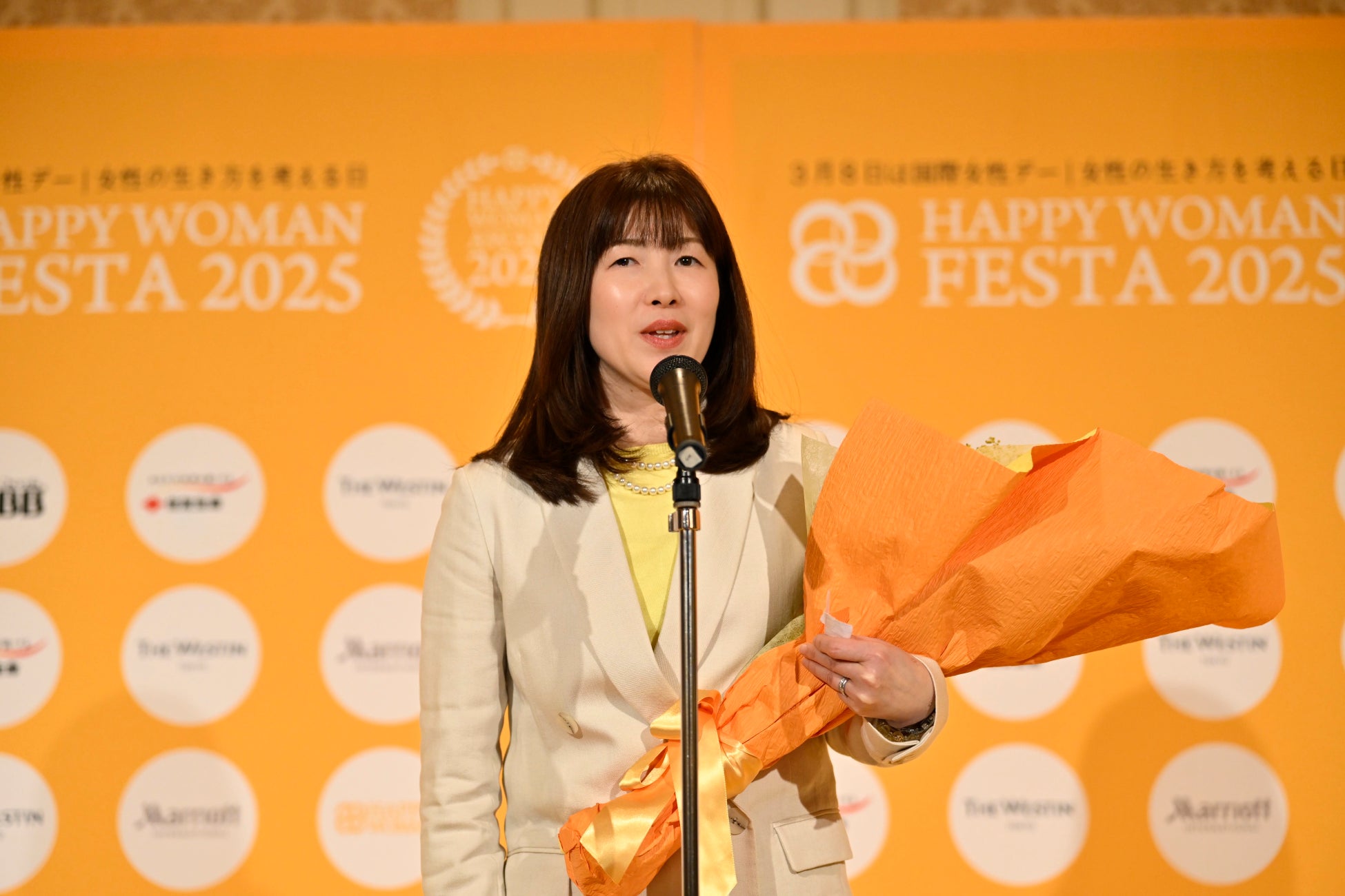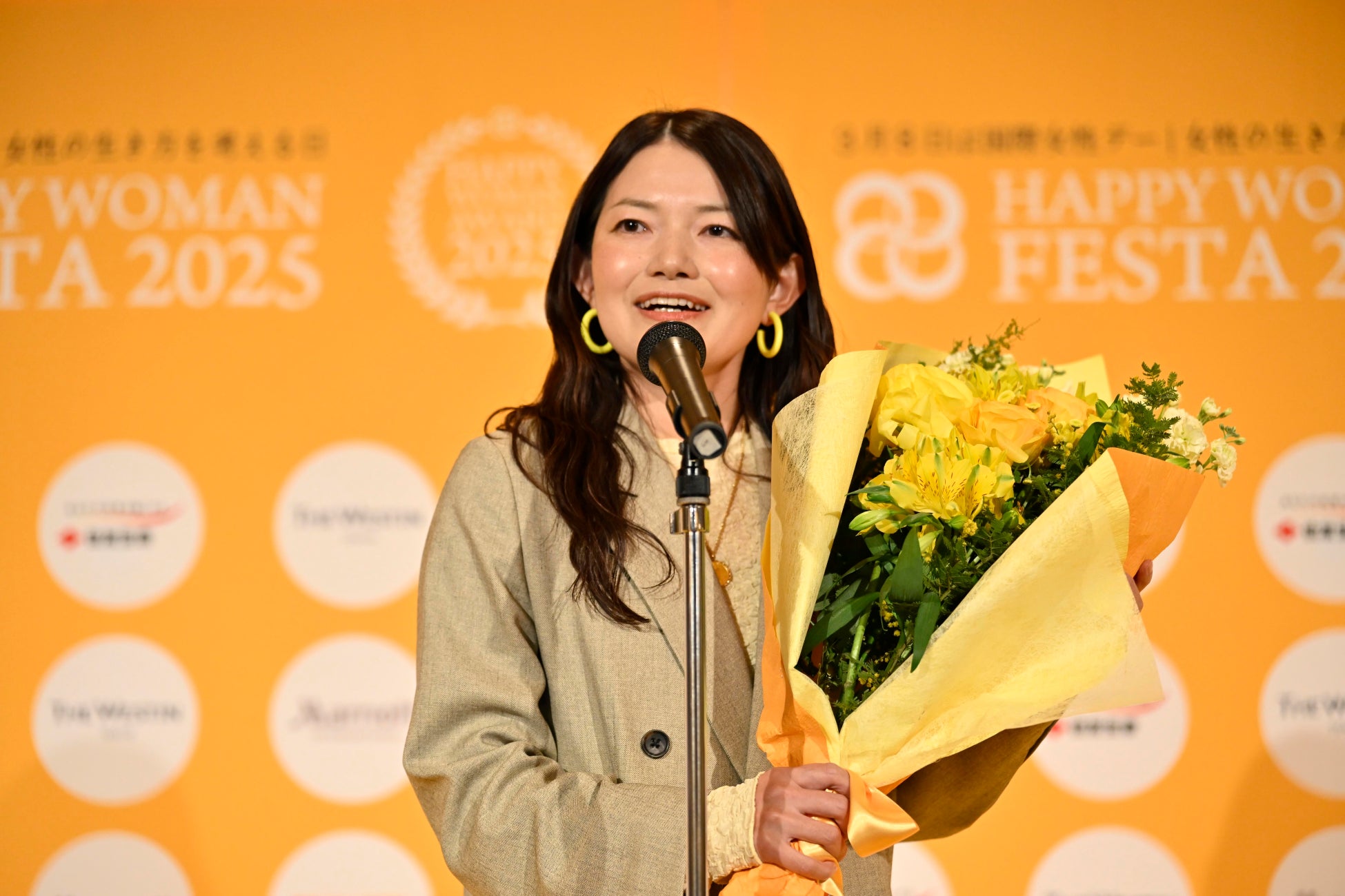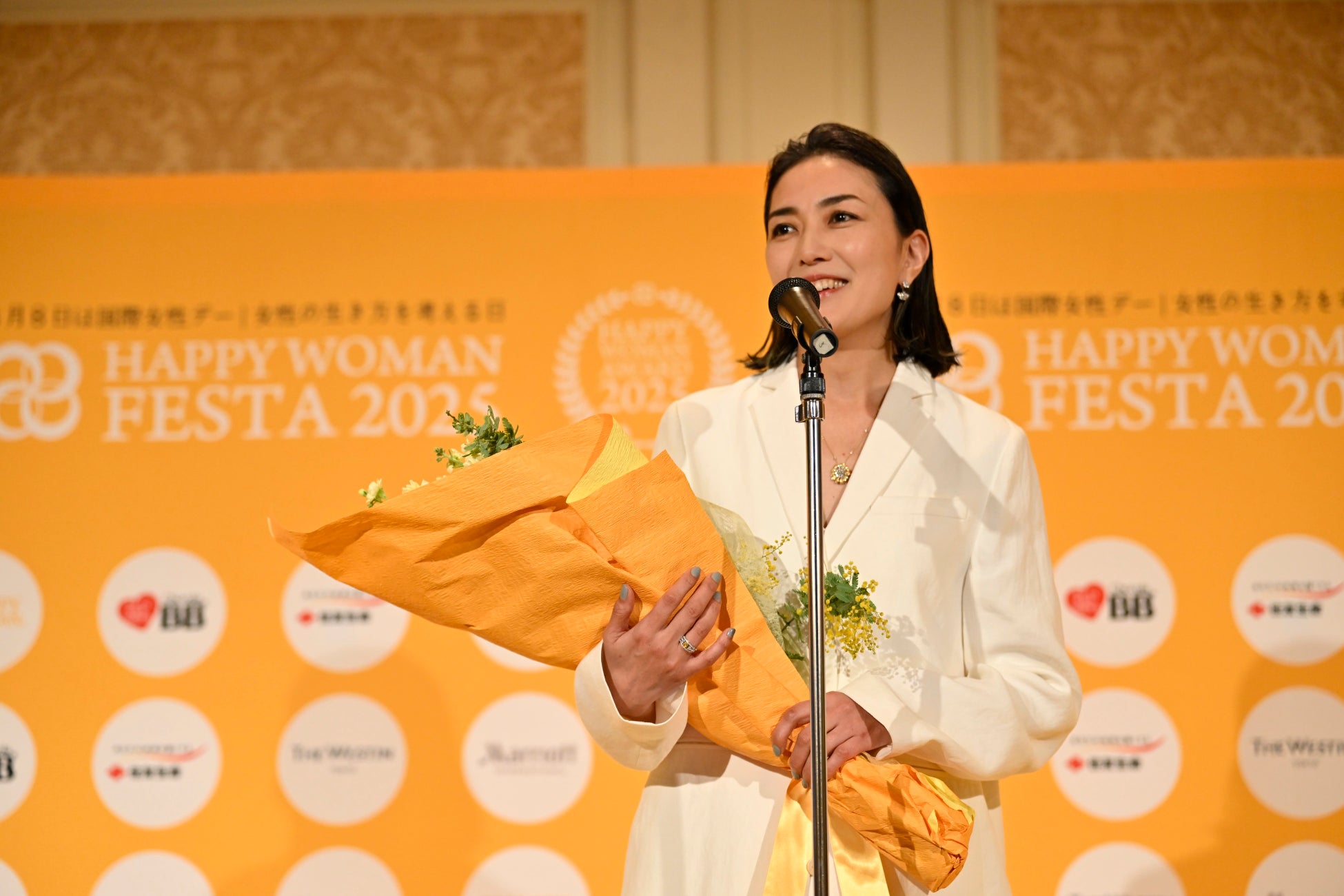 俳優として映画やドラマで多彩な役柄を演じ、豊かな表現力を通じて多くの女性に共感と勇気を届けてきた板谷氏。坂本美雨氏が発起人を務めるチャリティーオークションに積極的に参加するなど、俳優、クリエイターとしての枠を超え、多くの人々に希望を届けてきました。「国際女性デー」と同じく1975年生まれの板谷氏。「50歳を迎えると、体の変化や心の変化などいろいろあります。そういうときに一番励ましてくれたのが、母を含め年上の女性たちでした。私も年下の励みになれるような女性になれたらいいなと思います」とこれからの展望を語り、「本当にうれしい賞をいただきました。これからの励みにさせていただきます」と喜びの言葉でスピーチを締めくくりました。