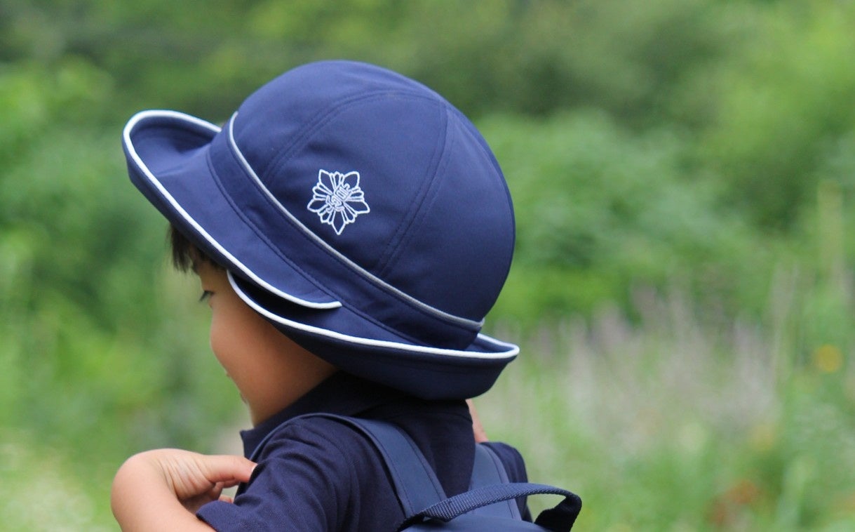 日本学校保健会推薦用品の紫外線対策・日焼け対策ができる幼稚園・小学校の体操帽子。フラップ取り外しができるタイプもあります。