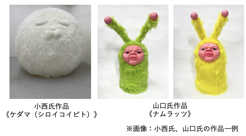 モフモフ・コレクティブは、旅の守り神をイメージした≪SHIP’S CAT≫作者で「おいでまい祝祭2022」のスペシャルアーティストである 現代美術作家ヤノベケンジ氏が、全身を毛だらけの柔らかな彫刻をつくる小西葵氏と、有機的なボディに特徴的な顔を取り付けた山口京将氏の2名と結成した、モフモフ系のアートユニットです。