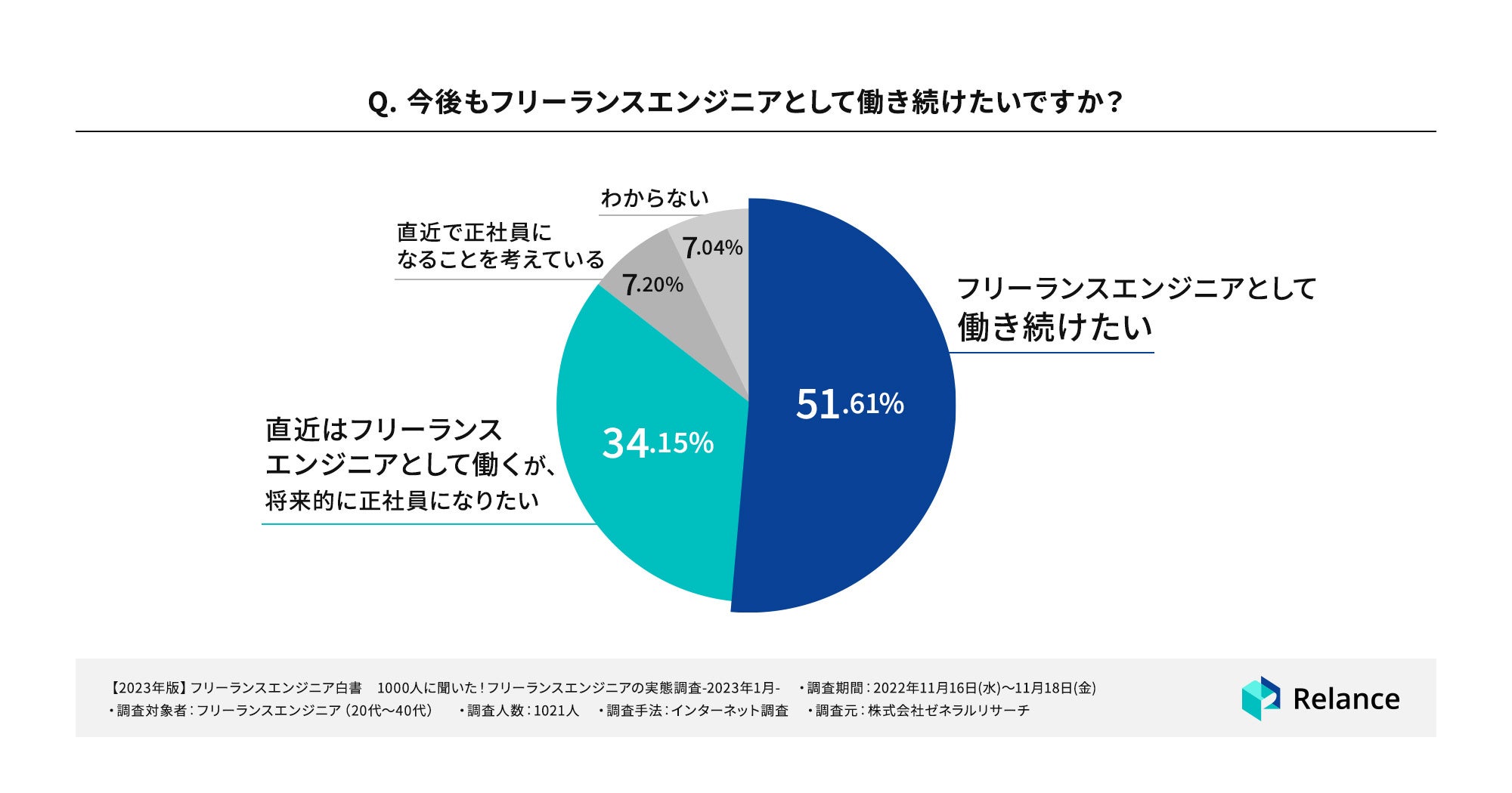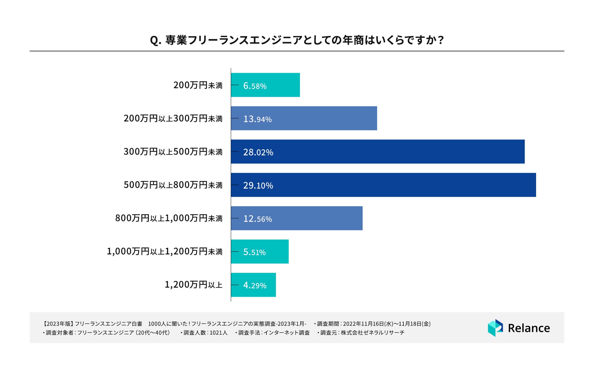 【2023年版】フリーランスエンジニア白書 1000人に聞いた!フリーランスエンジニアの実態調査-2023年1月-(https://relance.jp/blog/fact-finding-survey-of-freelance-engineers-202301/)