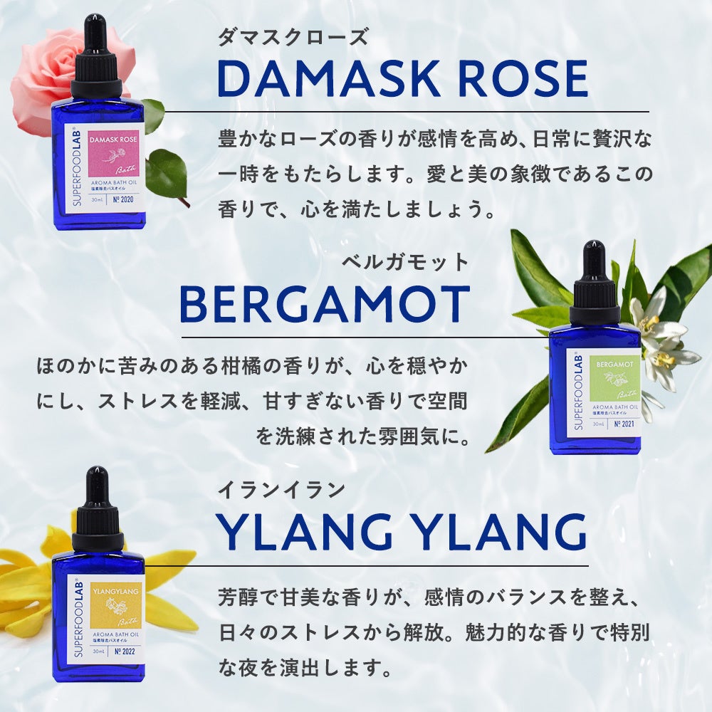 株式会社スーパーフードラボ(本社:東京都港区/代表取締役:波多野アキオ)の日本発コスメブランドSUPERFOOD LAB【スーパーフードラボ】が塩素除去アロマバスオイルを発売