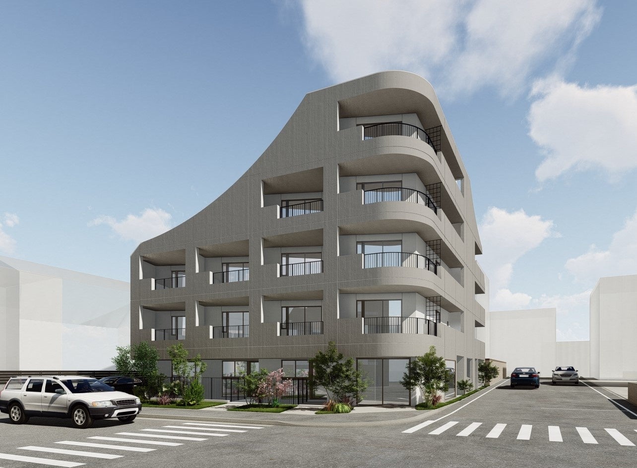 外観デザインは、WRC造でありながらも緩やかなカーブを描き、コンクリートの無機質な雰囲気を抑えた表情のあるデザインとしています。