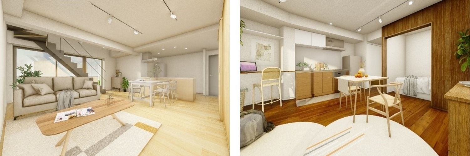 居室のタイプは1LDK~3LDKで、居室ごとに床材や建具のカラーリング、素材に変化をつけるとともに、ワークスペースにも活用できる備え付けのカウンターテーブルのある居室や、室内からバルコニーに繋がるテーブルが設置された居室など、バラエティに富んだ間取りとなっており、入居者様の好みやライフスタイルに合わせて居室をお選びいただけます。
