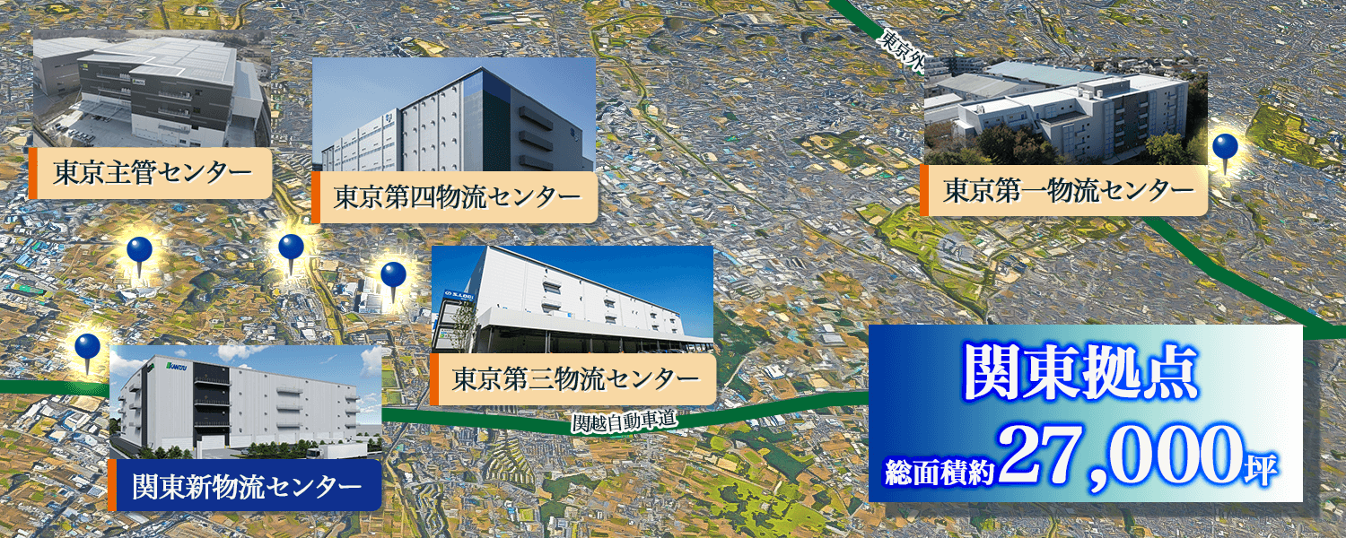 関東新物流センター(仮称)の30分圏内に関通の主要既存施設があることから、
