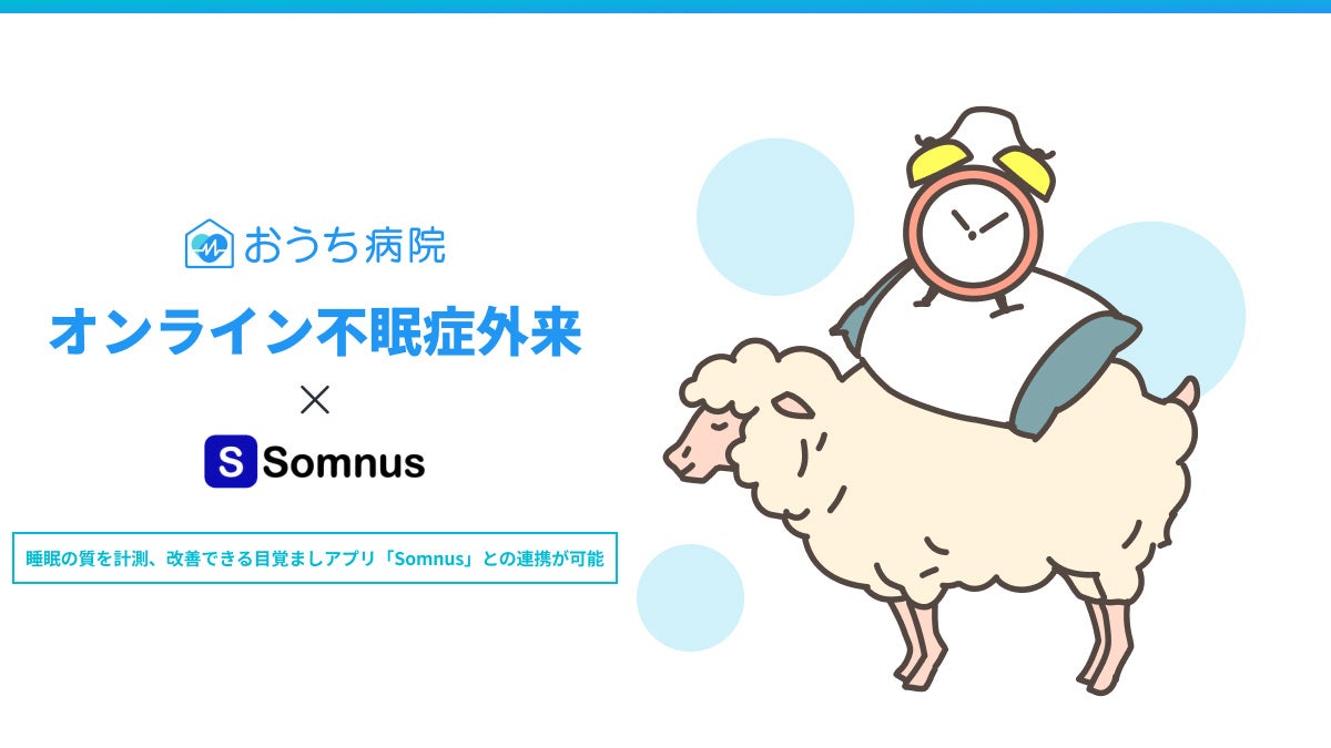 今回のサービス連携により、日々の睡眠データをスマートフォンで可視化できる「Somnus(ソムナス)」が、おうち病院のオンライン不眠症外来において活用されます。