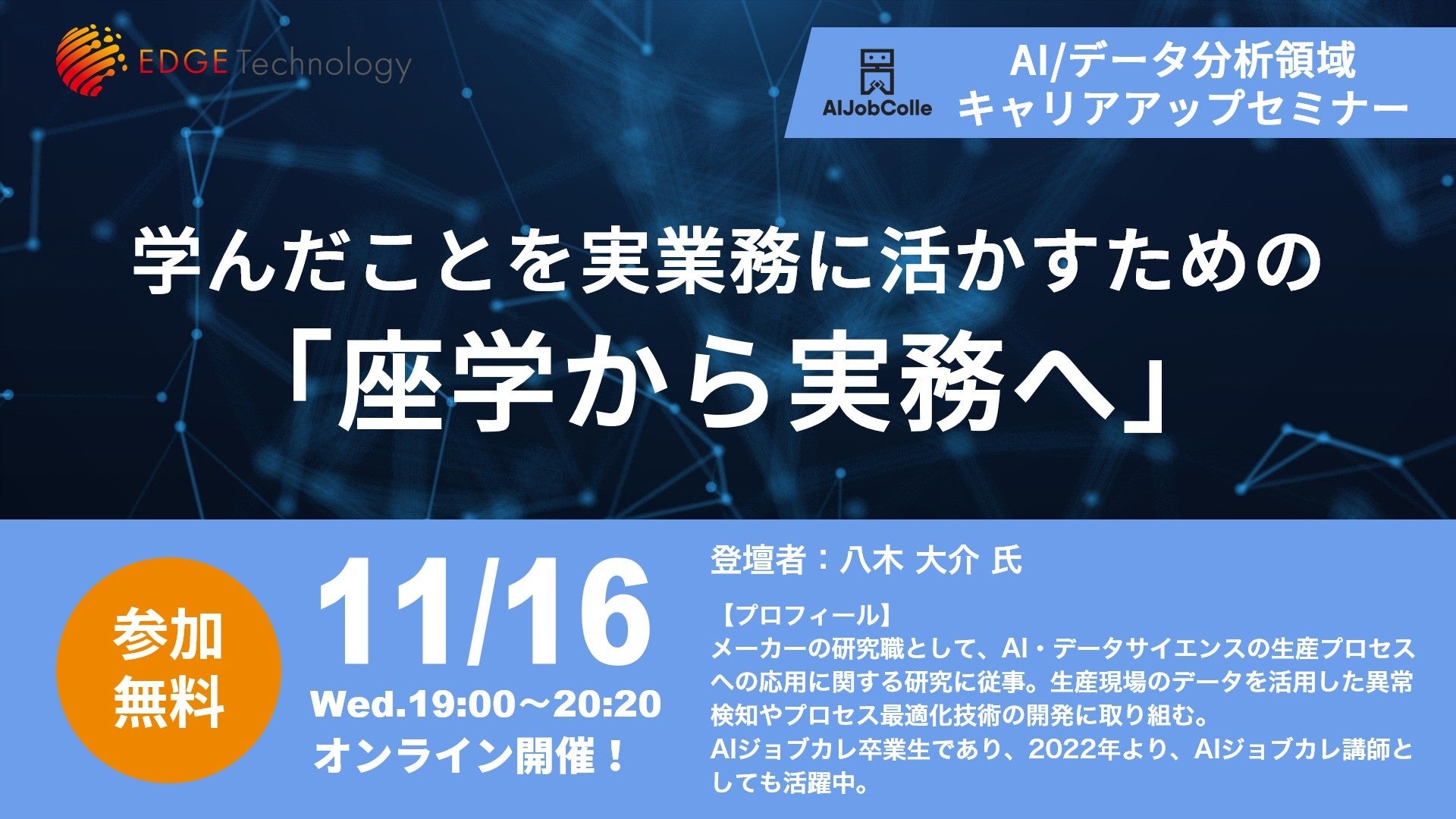 学んだ知識を実業務に活かしたい方へ!エッジテクノロジー(AIジョブカレ)が「座学から実務へ」セミナーを無料開催!【11月16日19:00】