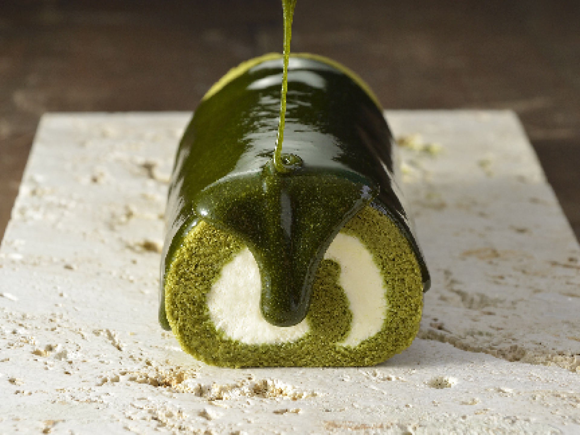 周りを抹茶のジュレで包み込み、全体の味を引き締めます。