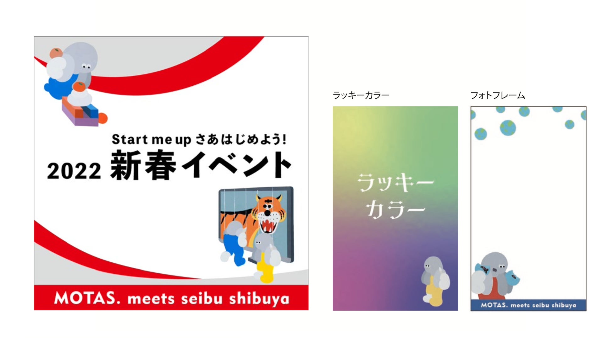2022年1⽉1⽇〜10日、西武渋谷店にてアートユニットMOTAS.の作品により新年の店内を彩りつつ、ご来場のお客様にARによるデジタルおみくじ&占いをご用意。お客様がご自身のスマートフォンを使ってイベントQRコードをかざしたのち、それぞれの指定のスポットにておみくじ、占い、ラッキーカラーのARをご体験いただけます。