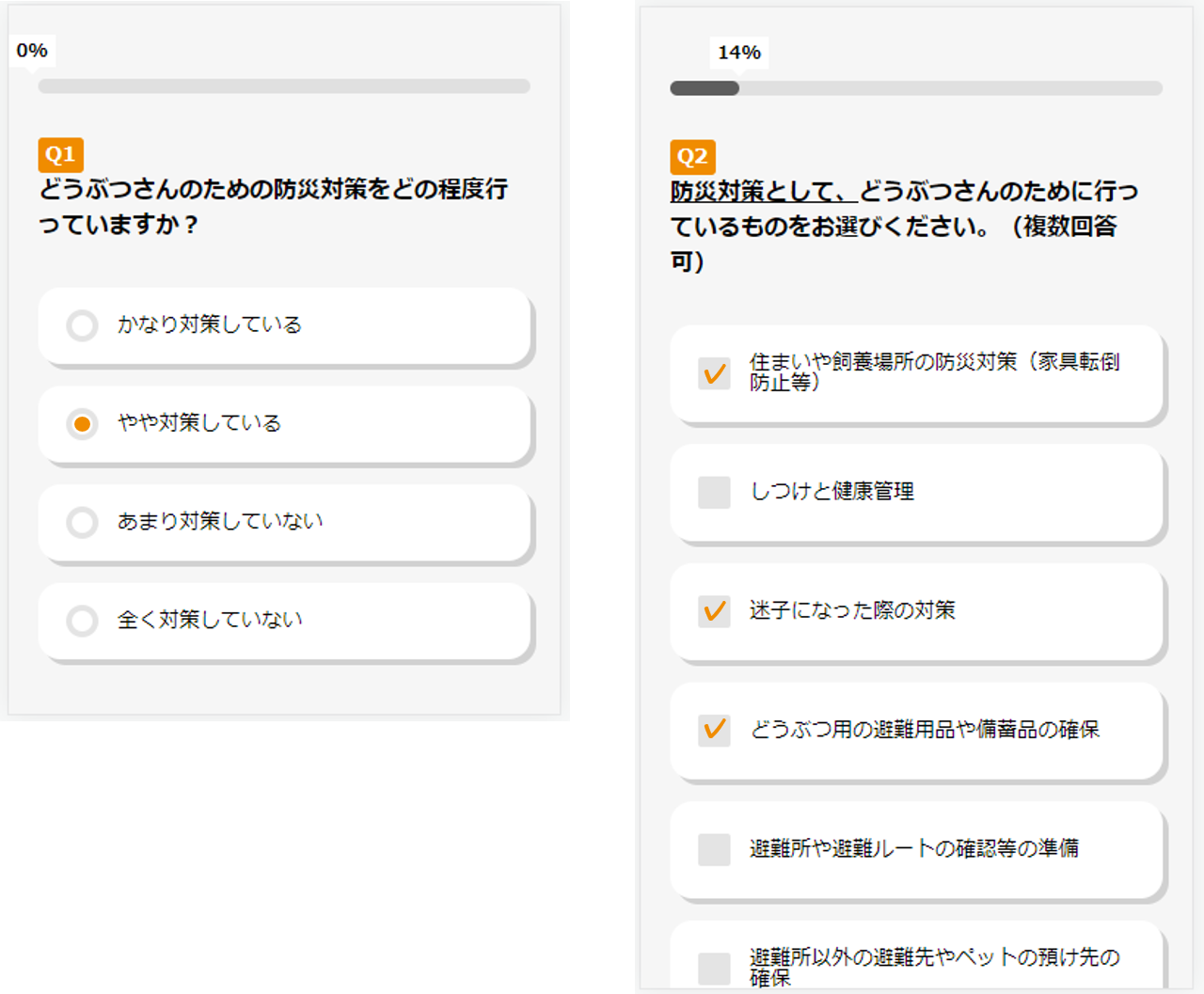 【 モニター回答画面 】:目的とするデータを正確に得られるよう、設計書をもとにアンケート内容を精査・作成していきます。