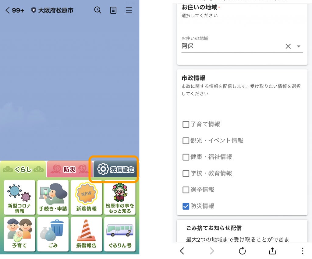 これまではLINEに登録している全ての住民に送られていた配信ですが、リニューアル後からは欲しい配信カテゴリーを選択することができます。