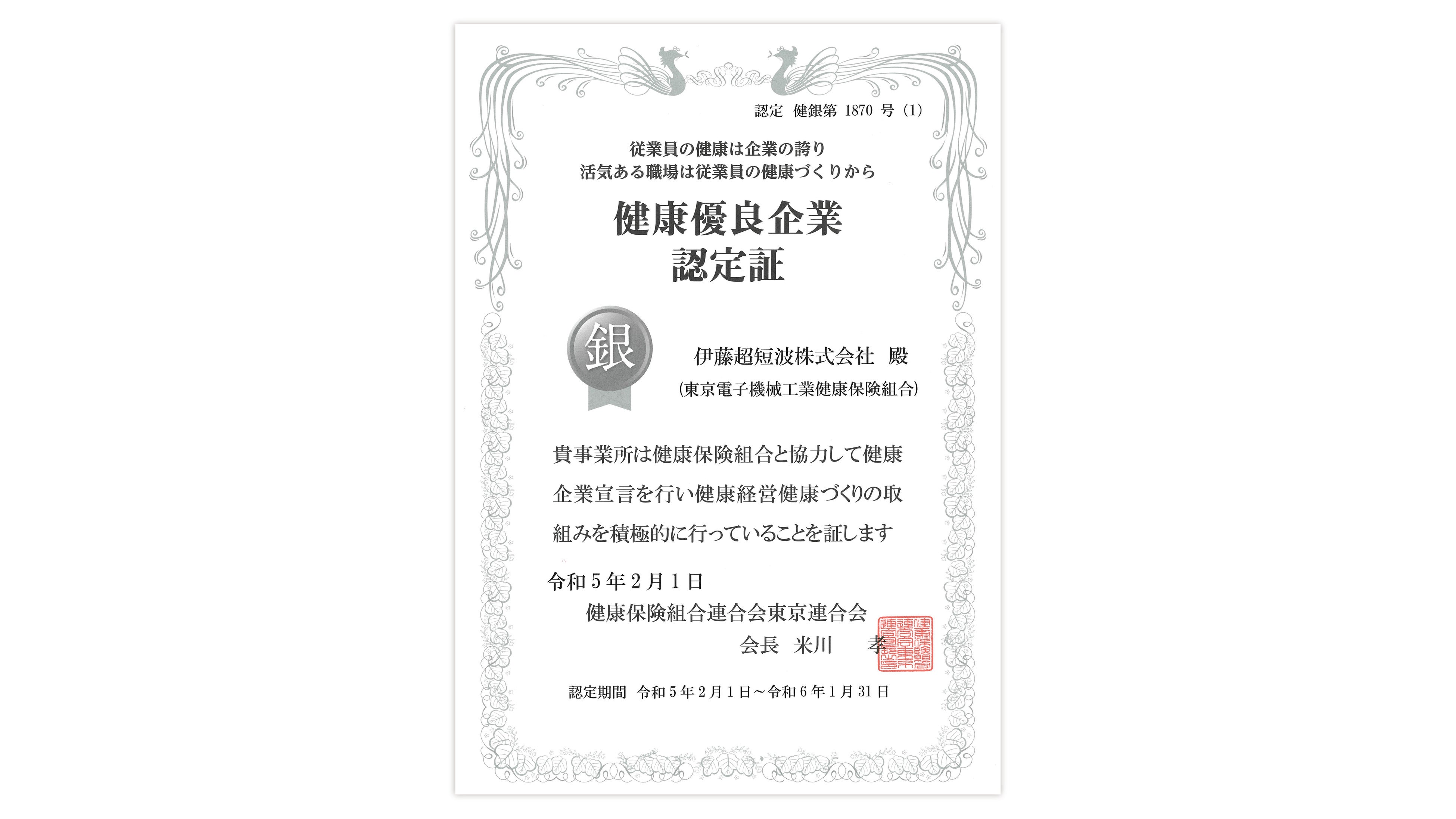 伊藤超短波、健康保険組合連合会 東京連合会の「健康優良企業」に認定