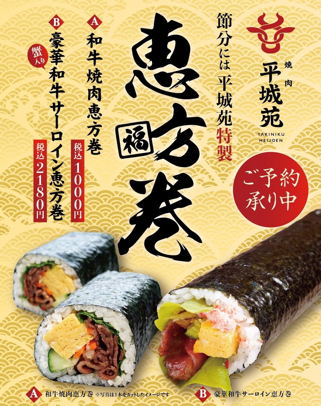 【焼肉 平城苑】最高級A5等級の和牛を贅沢に使用した“平城苑特製 恵方巻”予約開始