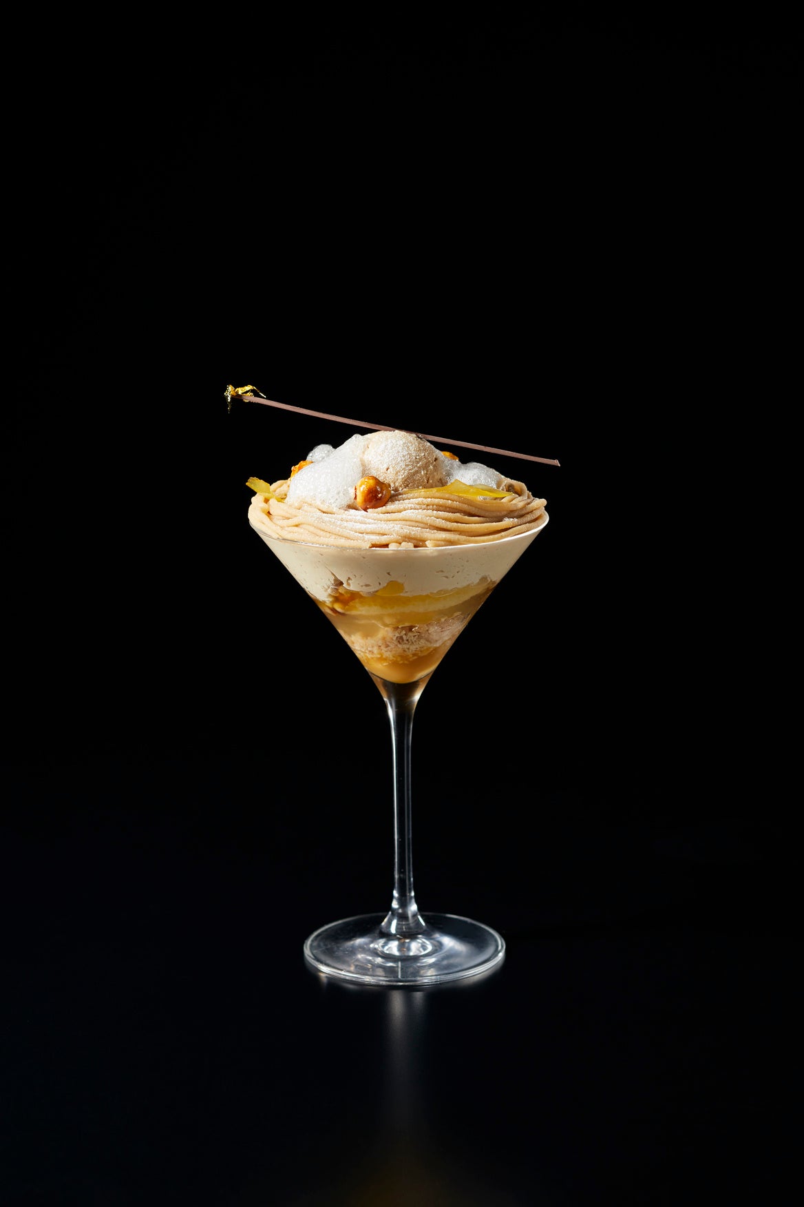 キャラメル風味のブロンドチョコレートを使用した、ショコラティエならではのモンブランパフェです。