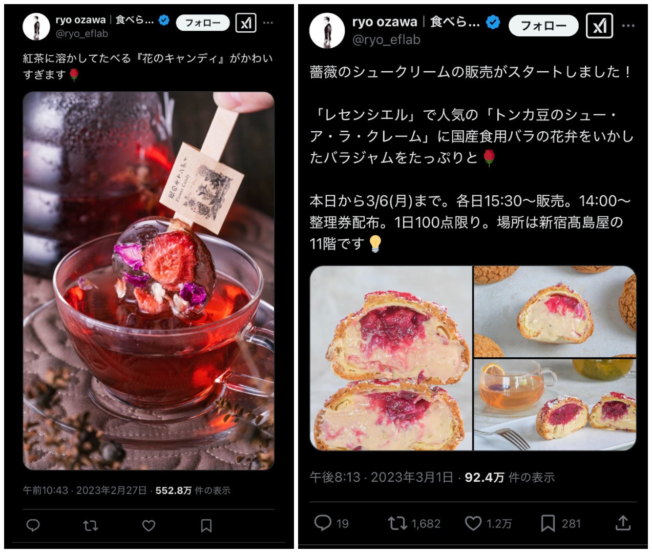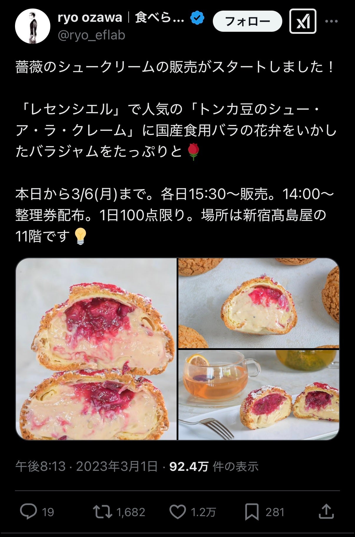 バラのシュークリームの投稿: https://x.com/ryo_eflab/status/1630889104006316034