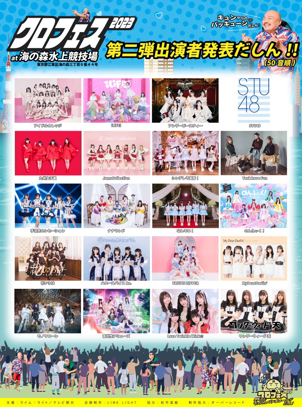 クロちゃんプロデュースの野外アイドルフェス「クロフェス2023」 第2弾出演者発表!!STU48、Jams、てばせん、ふるっぱー、花いろは 他20組出演決定!!