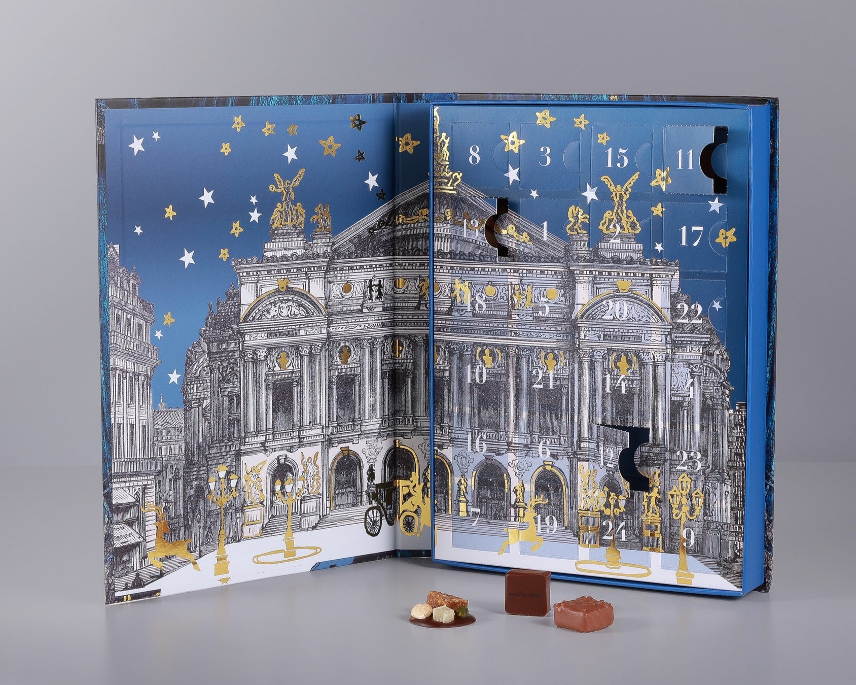 パリの街へのオマージュを込めてオペラ座の夜をイメージしたアドヴェントカレンダー。華やかなパリのクリスマスの雰囲気をお愉しみください。