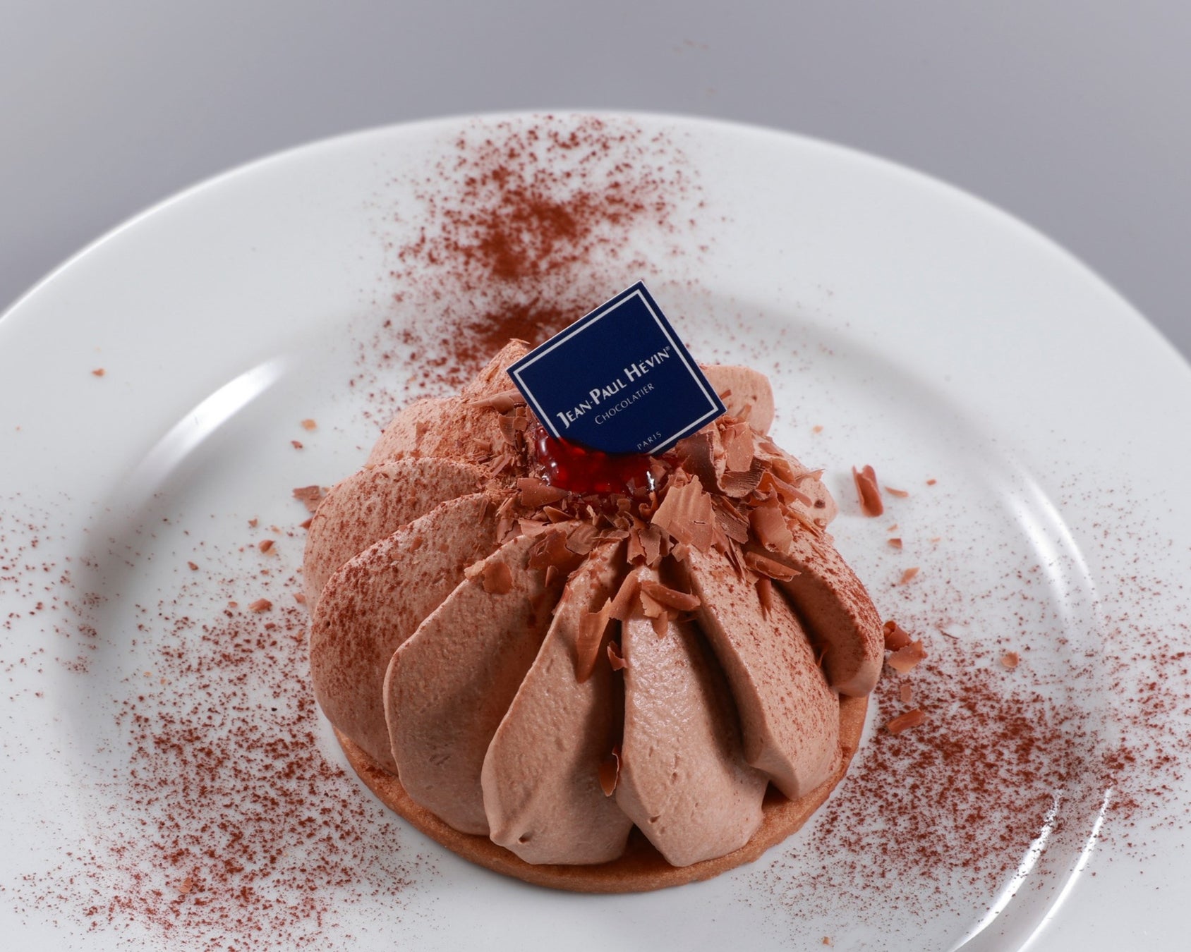 フランボワーズのムースとサブレをマダガスカル産カカオの軽いクリームで包み、フランボワーズのコンフィチュールを添えたデザート。ドリンク付きのセットメニューもご用意しています。