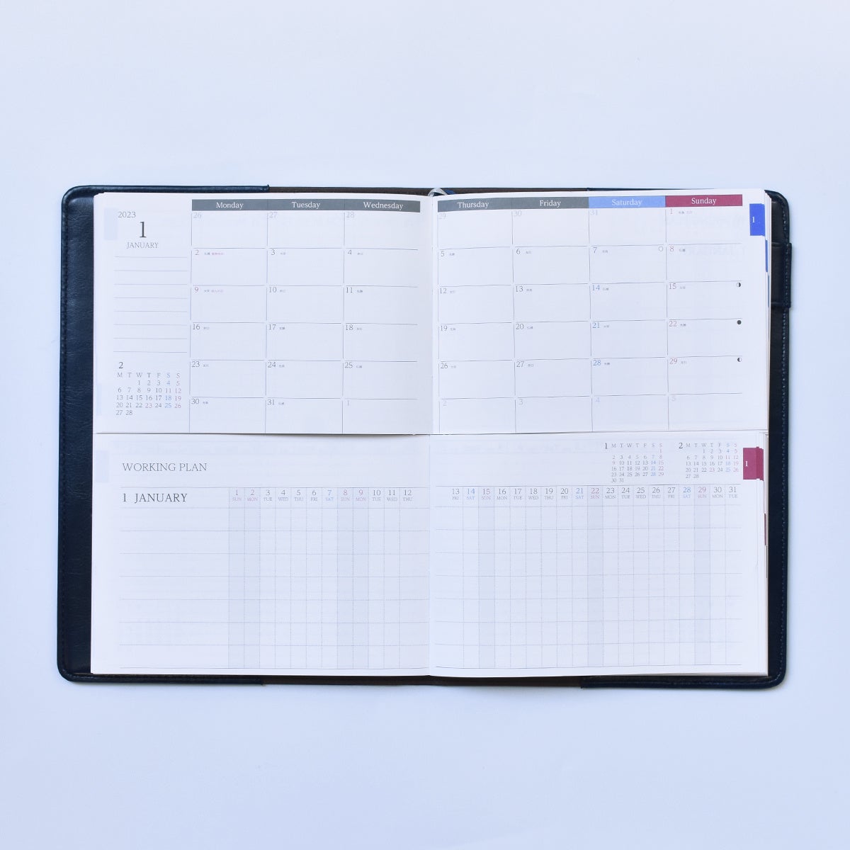 <仕様>月間カレンダー・1日1ページメモ(日付あり)・WORKINGPLAN(ガントチャート)・年間カレンダー