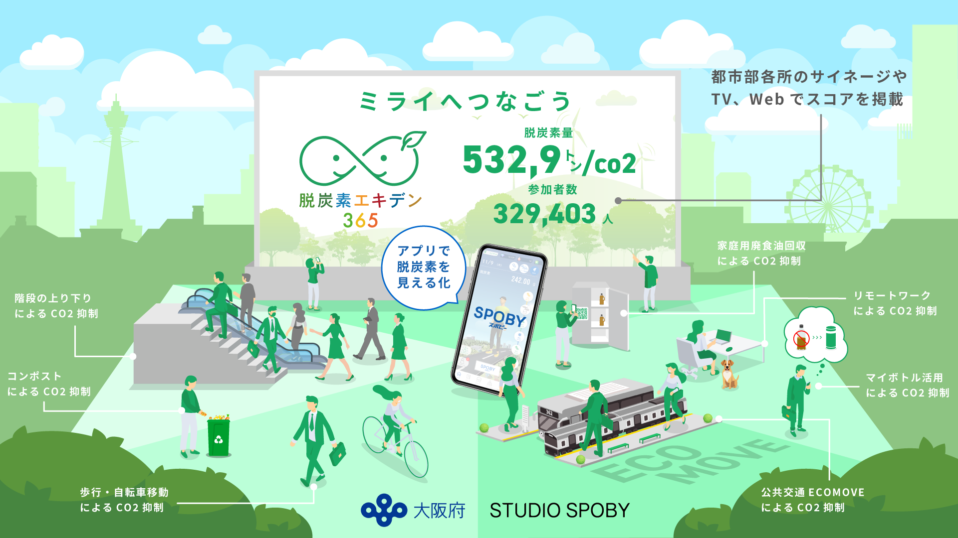 本プロジェクトは、参加する民間企業数百社・総勢10万人強の従業員と市民数十万人が、2025年に開催される大阪・関西万博開幕までの一年間、様々な環境アクションを実践してCO2排出抑制に取り組み、その脱炭素活動のスコアを見える化することでEXPOグリーンチャレンジへの貢献を目指すプロジェクトです。官民が力を合わせて「脱炭素社会」の実現を目指し、具体的なアクションによる行動変容を推進し、未来の子どもたちにタスキをつないでいくことを目指して大阪府とスタジオスポビーにより発足しました。