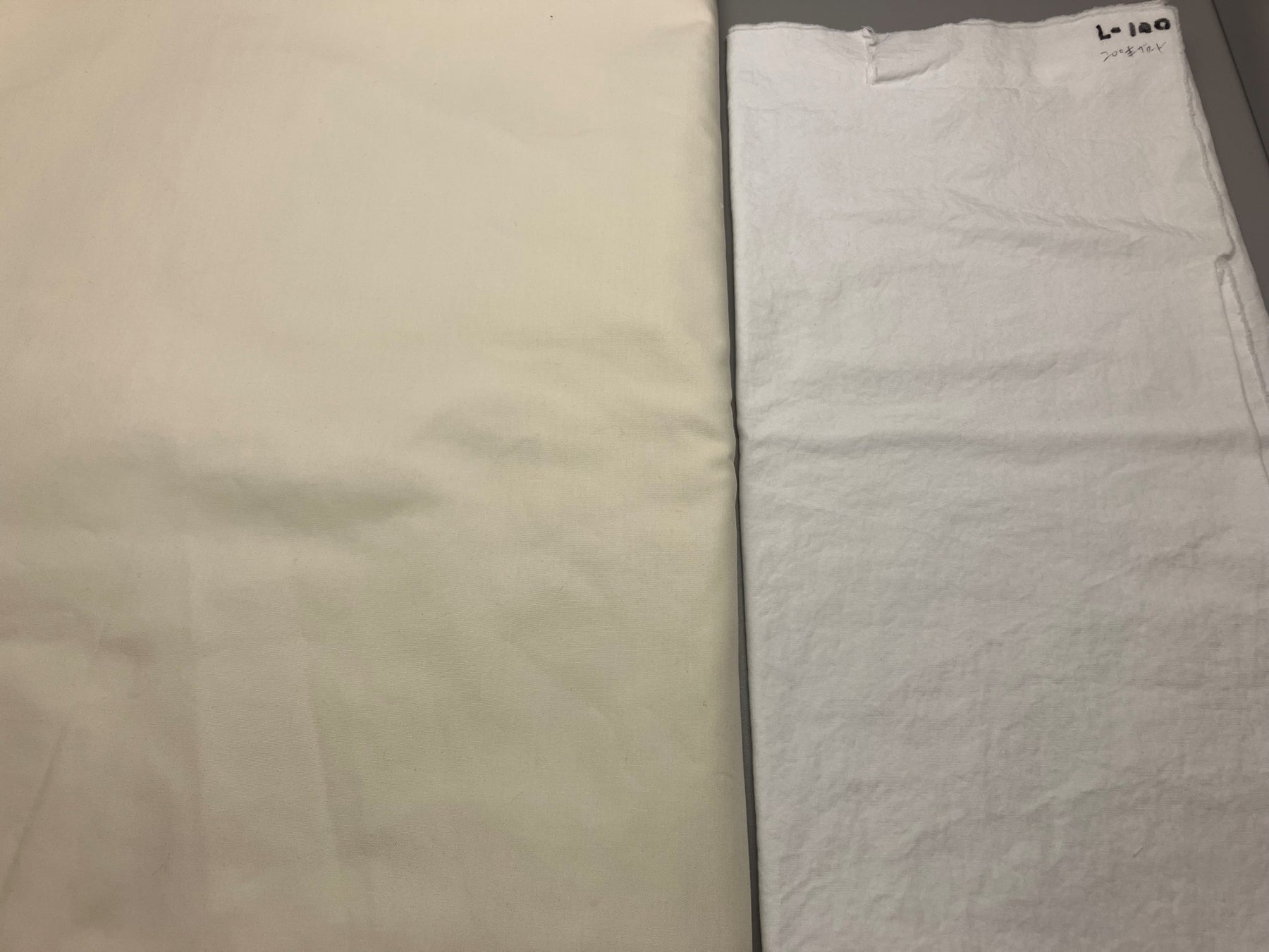 アパレル業界では、W&W性(ウォッシュ&ウエア性)の数値に基づき、「しわになりにくいシャツ」の性能を評価しています。一般的には綿100%の無加工品が1.0級、形態安定加工と言われるものが3.2級以上と評価されます※。一方寝装業界では、しわに関する基準がなく、綿100%素材の織物でしわがつくのは避けられないと考えられてきました。