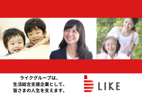 私たち、ライクグループは、世代、国籍、経歴を問わず、“人”を軸に事業を展開し、「保育」・「人材」・「介護」の3つの事業を主軸とし、ゆりかごからハッピーエンディングまで、人生のどの段階においても必要とされる、社会になくてはならない企業グループを目指しております。
