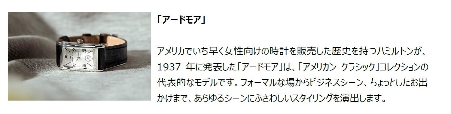ハミルトンは1892年アメリカ ペンシルバニア州ランカスターで創業。130年以上の歴史を誇るハミルトンのウォッチメイキング技術は、アメリカの鉄道黎明期と共に発展し、軍の兵士、パイロット、ハリウッドスターの腕元を彩ってきました。フィルムメーカーのウォッチメーカーとして揺るぎない存在であり続けているハミルトンの時計は、500本を超える映画に登場しており、カスタムウォッチが複数のハリウッドの大ヒット映画において非常に重要な役割を担っています。タイムピースを通して、本物のキャラクターやストーリーラインの確立に励む中で、ビデオゲームに登場するブランドウォッチを初めてデザインしたのも、ハミルトンです。クラフツマンシップと精度を追求し続けるハミルトンは、1957年に世界初の電池式腕時計「ベンチュラ」を発表し、1970年には初のLED式デジタルウォッチ「ハミルトン パルサー」を発表しました。時代を超えて進化し続けるハミルトンの時計を、直営ポップアップストアならではの豊富なラインナップと心躍るプロモーションをお楽しみください。