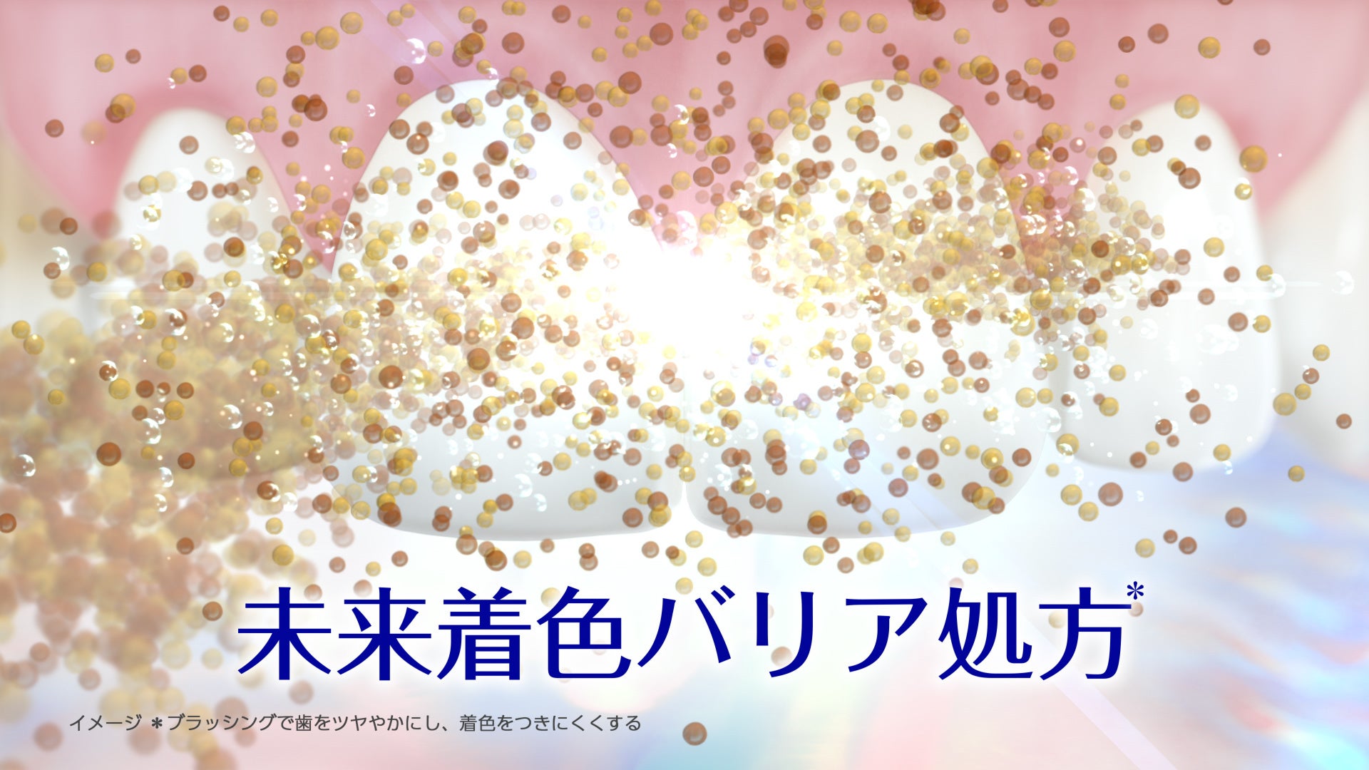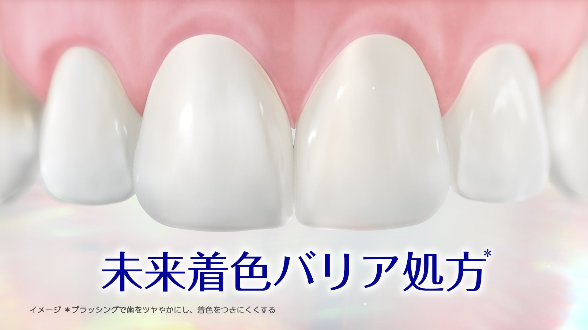 シュミテクト最先端のホワイトニングサイエンス。「未来着色バリア処方」で、未来の白い歯のために3段階のアプローチ。今の汚れをしっかり落とすだけでなく、再び着色するのを未然に抑え、輝く白い歯に導きます。