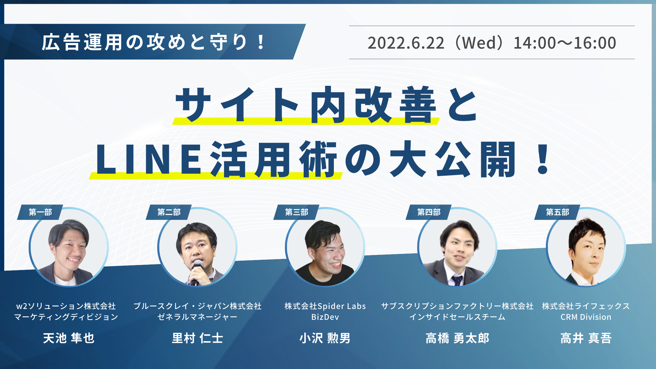 【6月22日(水)14:00~開催・参加無料】広告運用の攻めと守り!企業マーケター必見のサイト内改善方法とLINE活用術に関する5社合同ウェビナー開催決定!