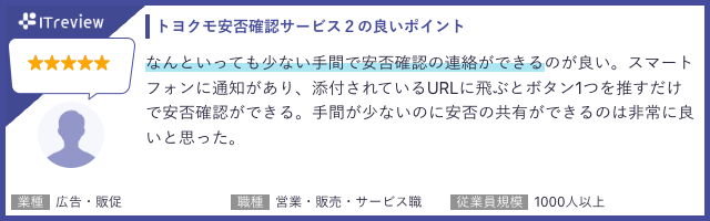 https://www.itreview.jp/categories/safety-confirmation/reports/836