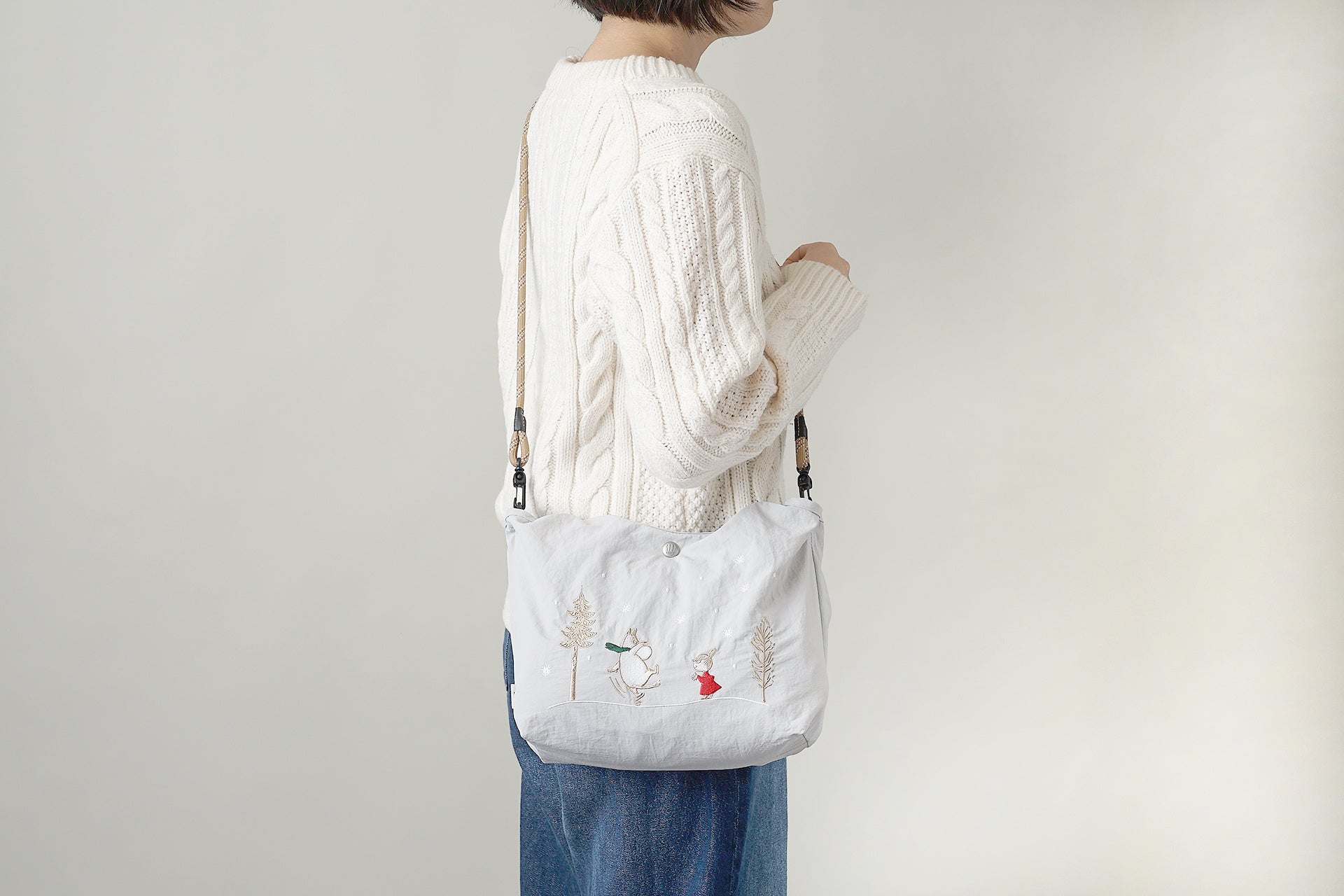また、機能性も追求しました。本体素材には軽さを実現する軽撥水なナイロンを採用し、寒い冬のお出かけも軽快に楽しんでいただけます。この冬は、ムーミンとリトルミイが織りなす温かな物語と一緒に、デザインと機能性を両立させたバッグで軽やかに街へ出かけませんか。あなたの冬の装いに、心ときめく彩りを添える特別な一品です。