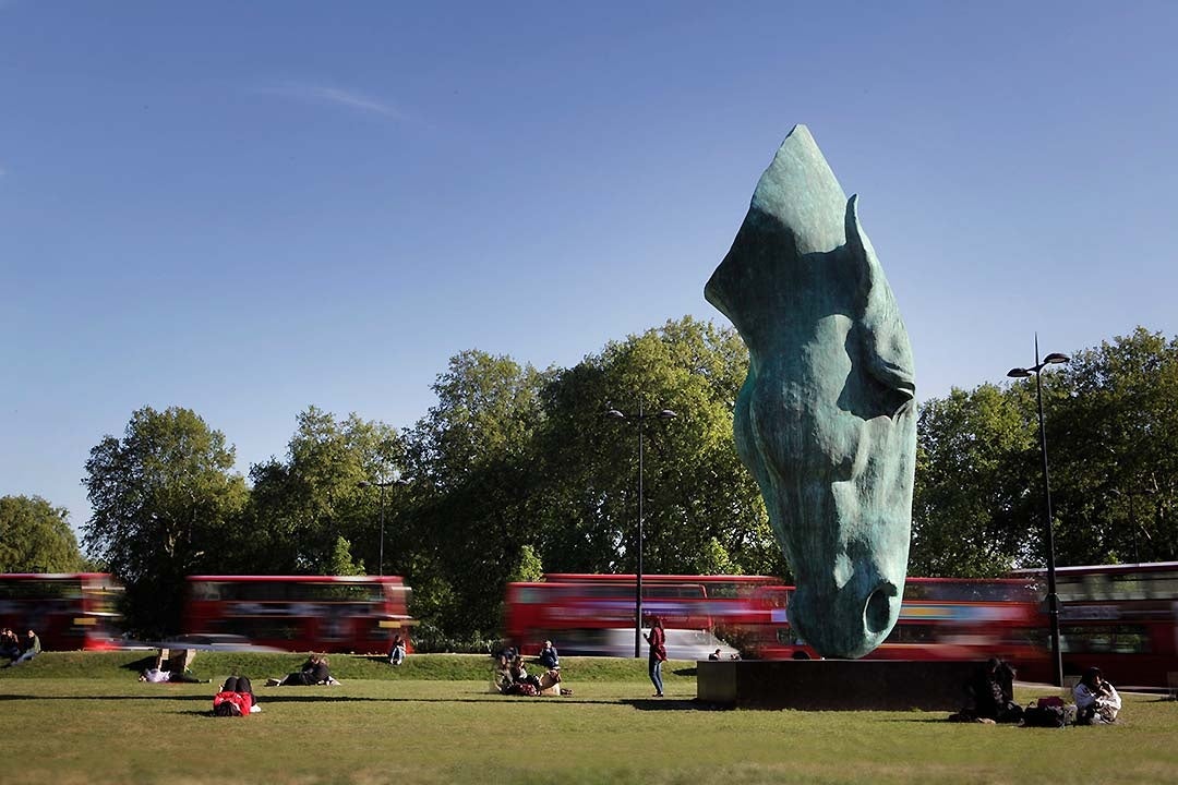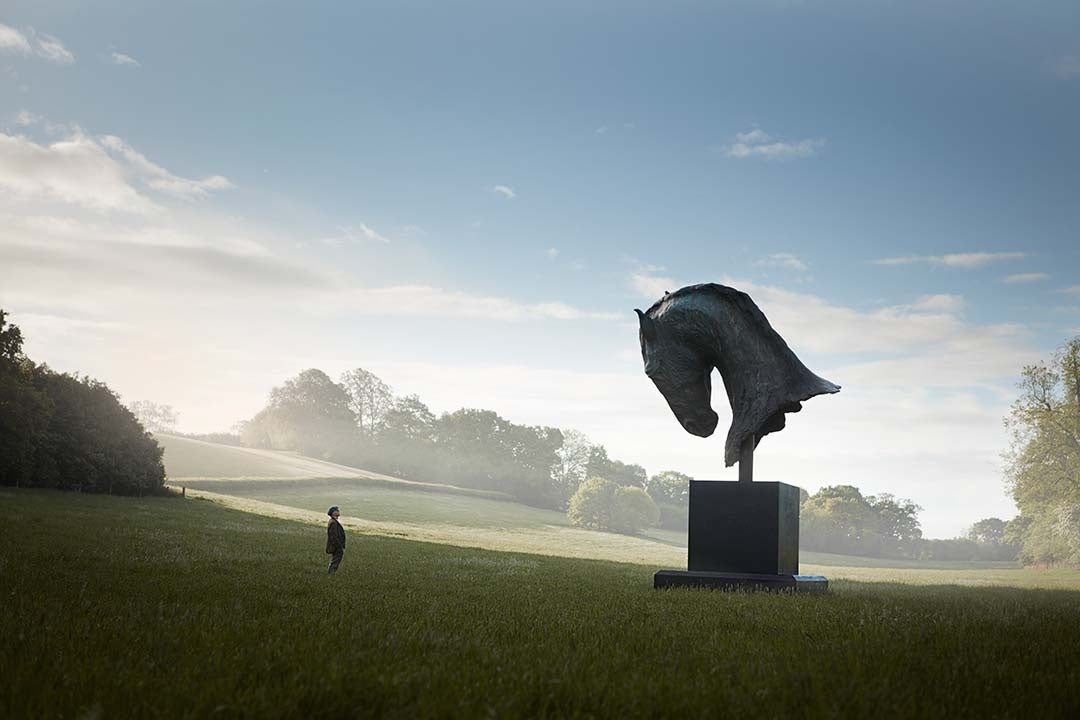 ニック・フィディアン・グリーンの彫刻は都市の中心部はもとより、英国王室が主催するロイヤルアスコットやフランスのドーヴィル競馬場まで、世界中のさまざまな場所に設置され、個人のコレクターをも魅了しています。また、2011年にハイド パークのマーブル アーチに設置された、高さ33フィートに達する同氏の代表作《スティル ウォーター》は、今やロンドン市民に愛されるランドマークとなっています。同氏のイリュージョニストのようなジェスチャーは、この動物が鼻先で水面に接し平衡を保つ繊細なバランスを捉えています。その存在感は力強くありながら、その姿勢は儚く無力です。