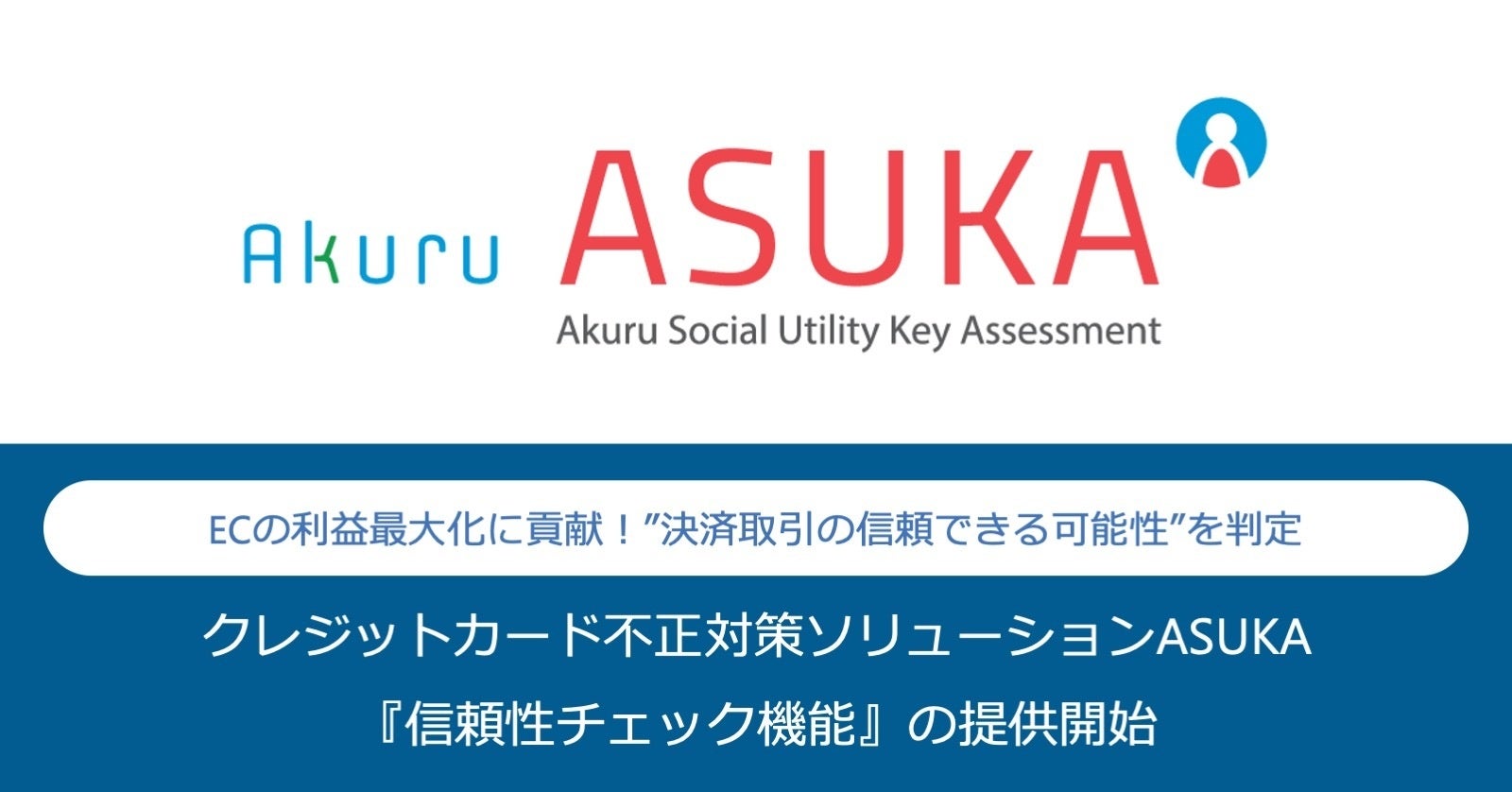 クレジットカードの不正利用対策ソリューションを提供する株式会社アクル(所在地:東京都港区、代表取締役社長:近藤 修、以下「当社」)は、ECカード加盟店向けに、当社が提供する不正検知・認証システム「ASUKA」を通じて「信頼性チェック機能」を提供開始します。