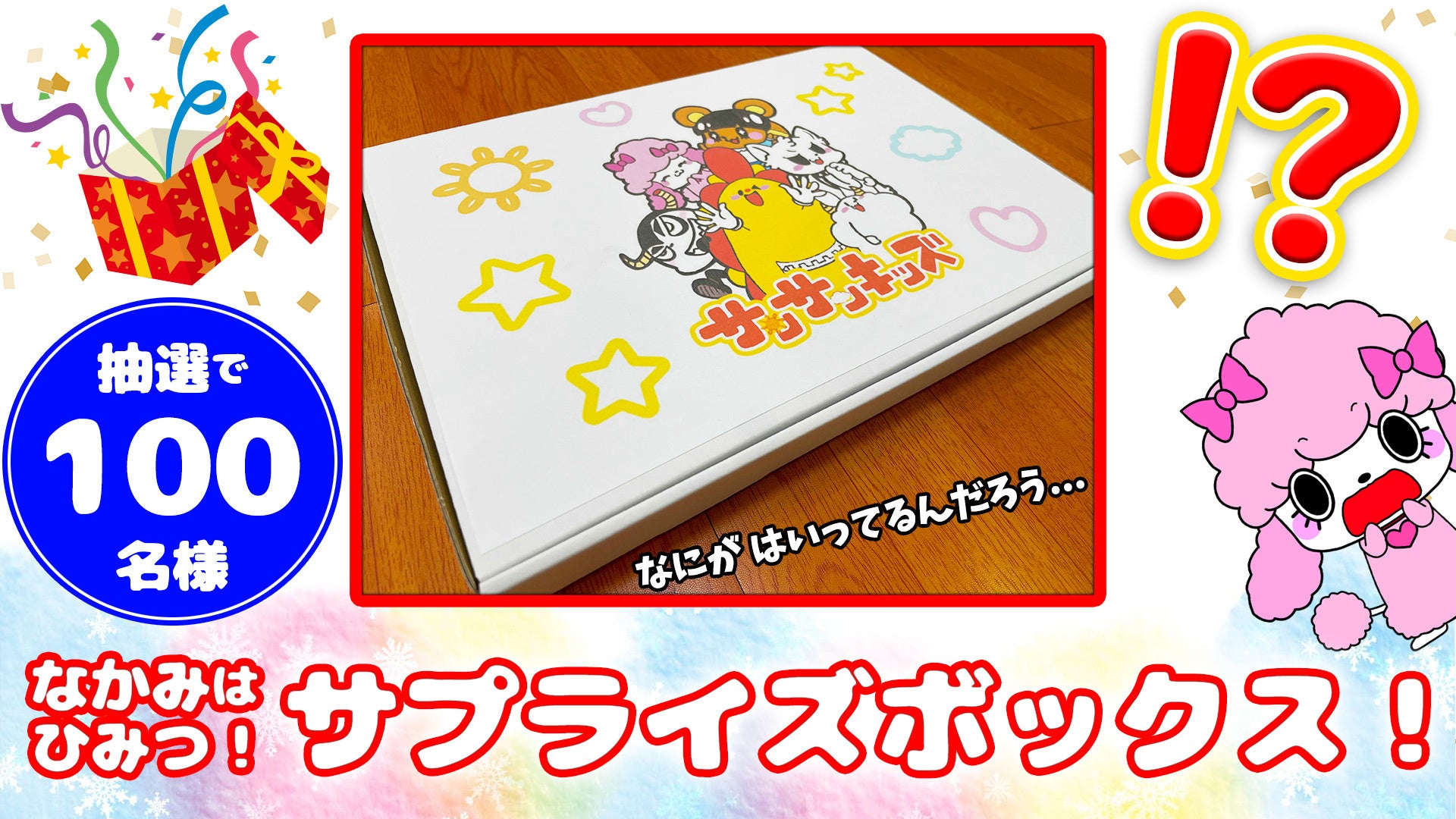 抽選で100名様に、中身はひみつ!?のグッズがたくさん詰まった「サンサンキッズサプライズボックス」をプレゼント致します!