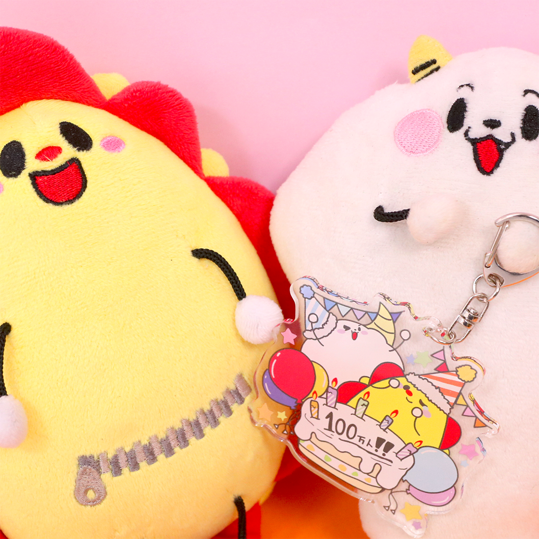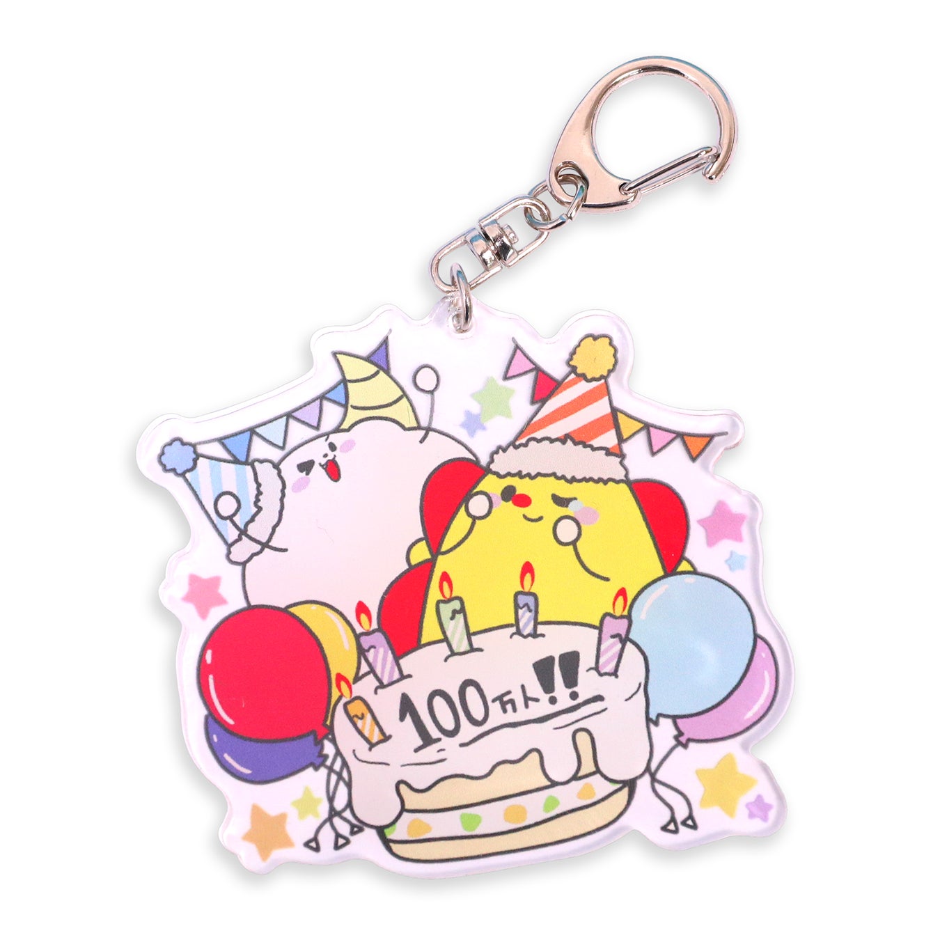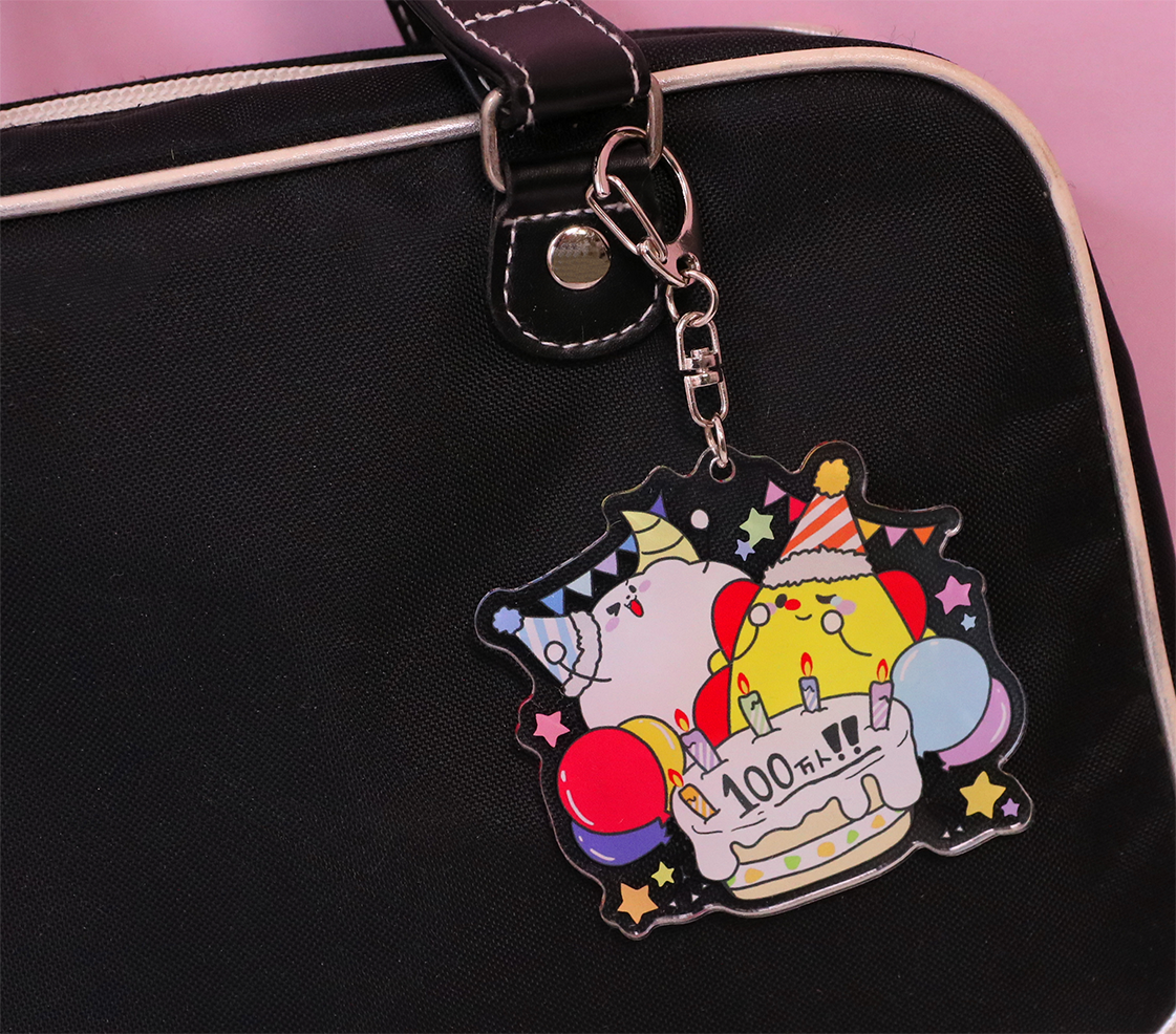 100万人を記念したオリジナルデザインのアクリルキーホルダーとなっており、予約期間限定の完全受注生産グッズとなっております。