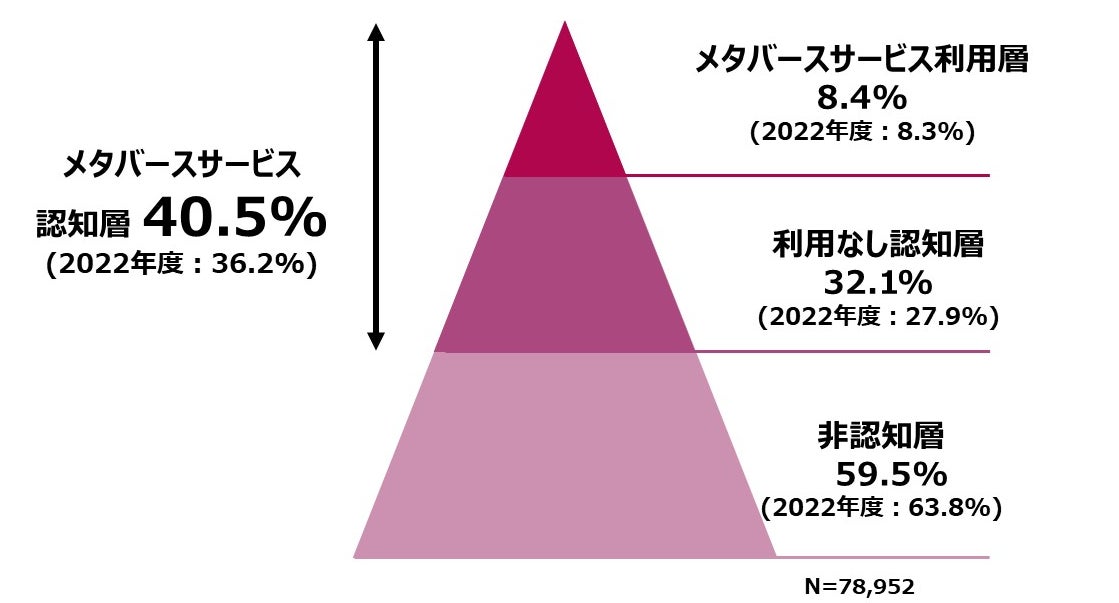 ※今回約50のメタバース関連サービスを提示し、認知、利用経験・頻度を聴取。利用層は2-3ヶ月に一度以上でいずれかのメタバース関連サービスを利用している人をメタバース利用層(以下利用層)と定義しました。