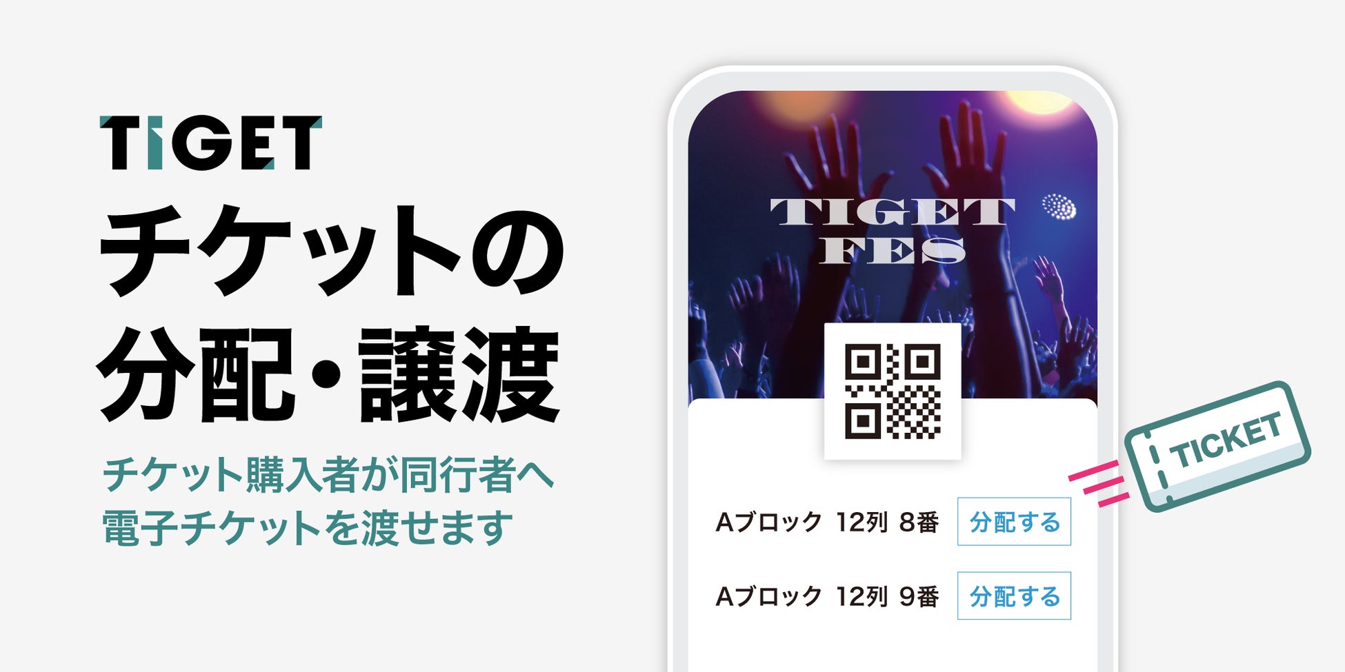 20万件を超えるイベントで導入され、誰でも直感的に操作ができるセルフサーブ型のイベントプラットフォーム「TIGET」は、この度、購入したチケットを同行者へ分配・譲渡ができる「チケット分配・譲渡機能」を提供開始しました。
