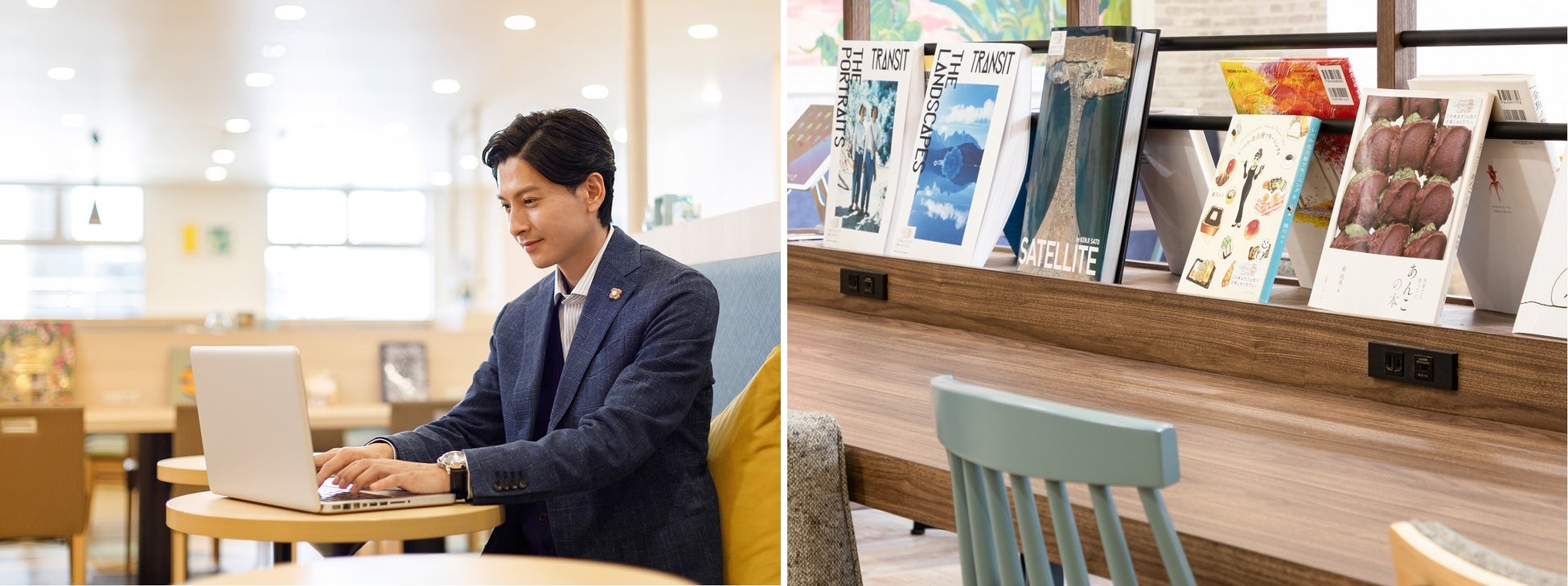 (左)コンフォートホテル姫路 Comfort Library Cafe (右)コンフォートホテル新山口 Comfort Library Cafe
