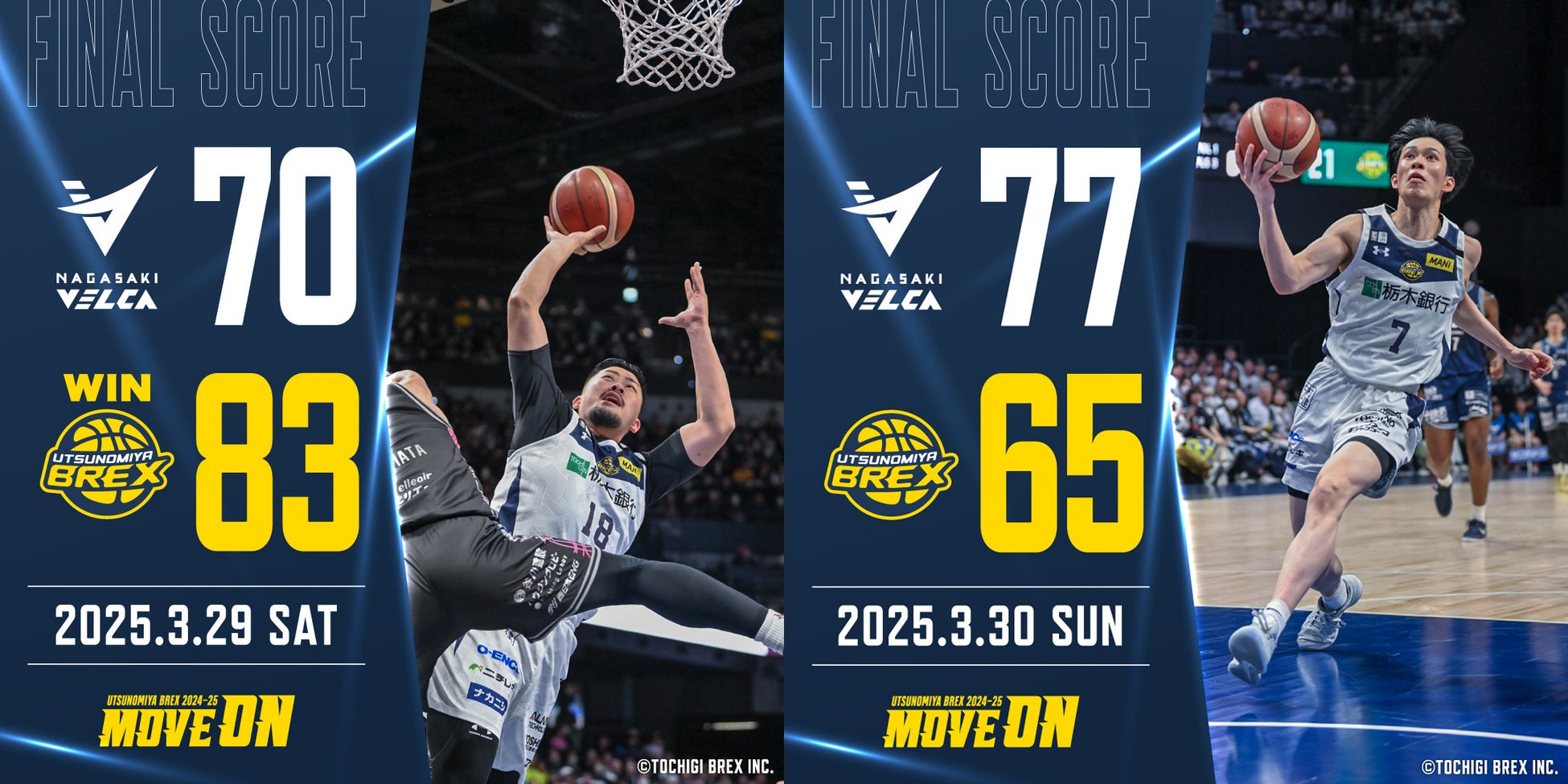 宇都宮ブレックスは、2025年3月29日(土)と3月30日(日)にハピネスアリーナで長崎ヴェルカと対戦しました。
