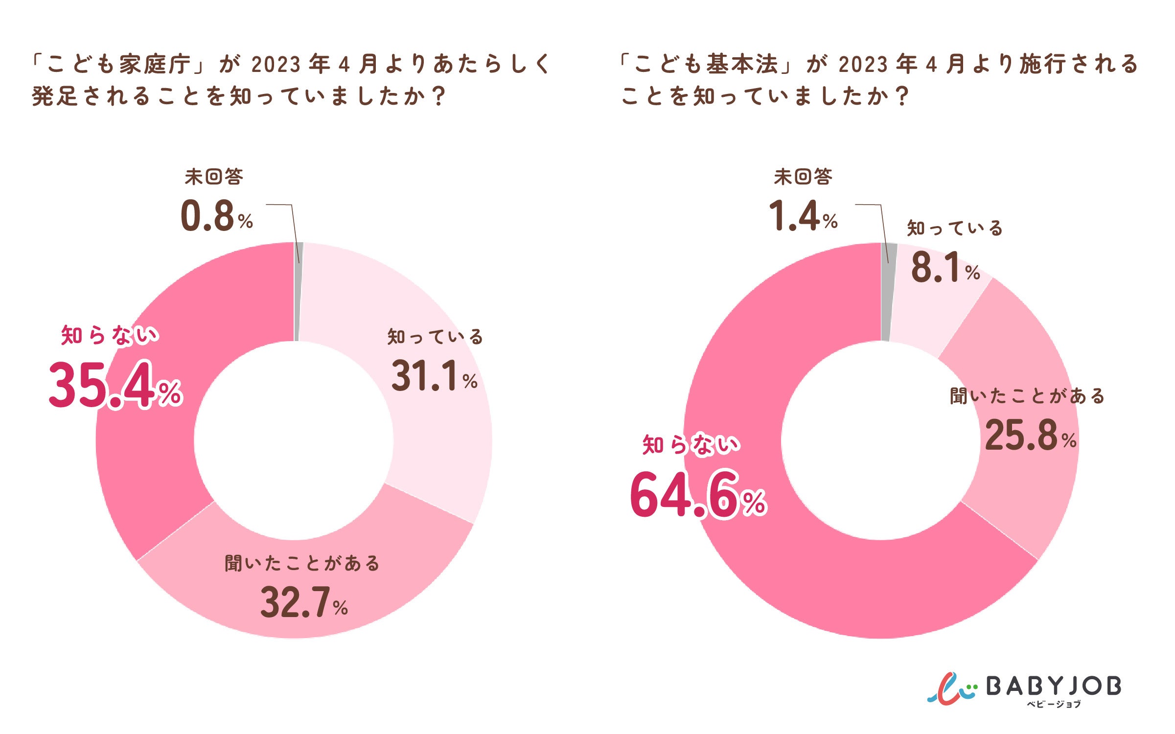 保育施設向けおむつのサブスク「手ぶら登園」や保育施設探しをサポートする「えんさがそっ♪」など、子育て支援サービスを運営するBABY JOB株式会社(本社:大阪府大阪市、代表取締役社長 上野公嗣)は、全国の保護者1,179名を対象に「こども家庭庁」に関するアンケート調査を行いました。