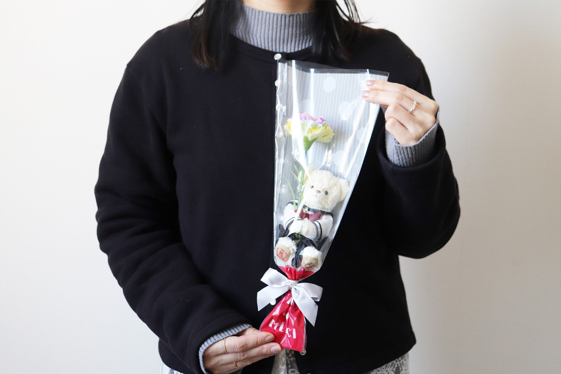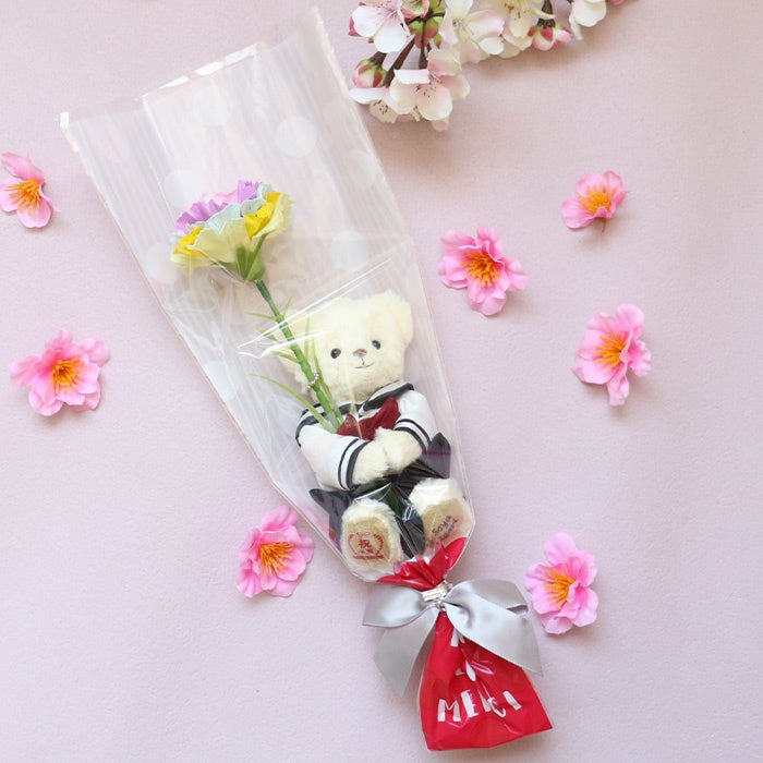 卒業の記念としてだけでなく、新たな生活を応援し、日々の癒しやつながりを生む「テディベア一輪ブーケ」。特別な思いを込めて、大切な方への贈り物にいかがでしょうか?