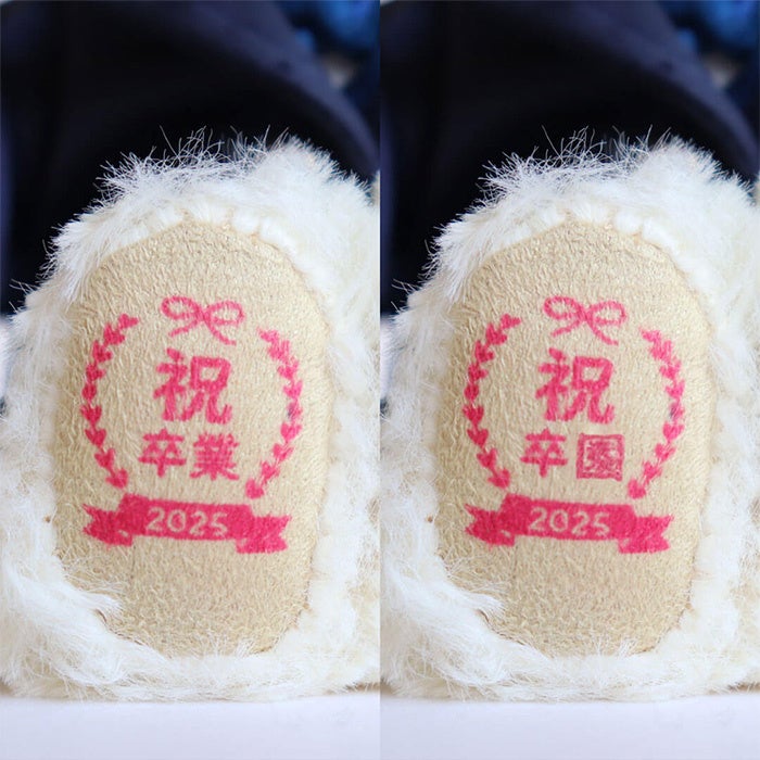 テディベアの足裏には「祝卒業 2025」のプリントが施されており、卒業記念品として最適です。