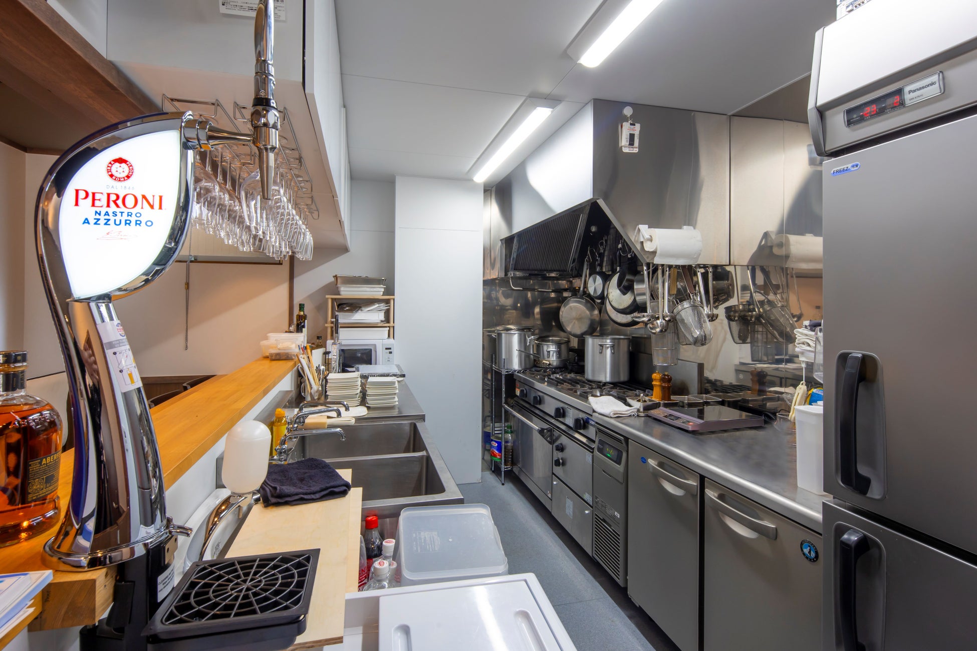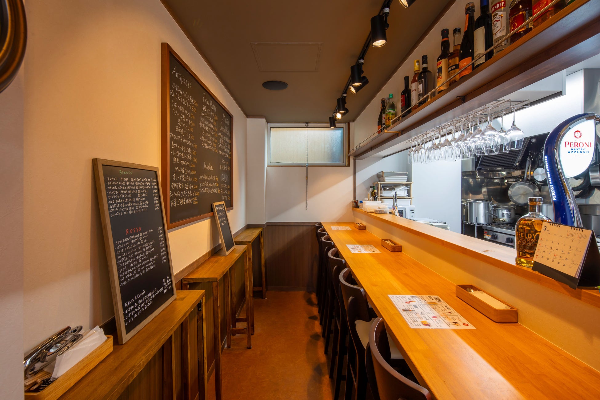 店内には、ライブ感あふれるオープンキッチンのカウンター席と居心地の良いテーブル席があり、お酒を飲みながら、カウンター越しに店主や他のお客様との会話を楽しんだり、目の前で調理される料理の香りや音を感じたりしながら、楽しい時間を過ごすことができます。