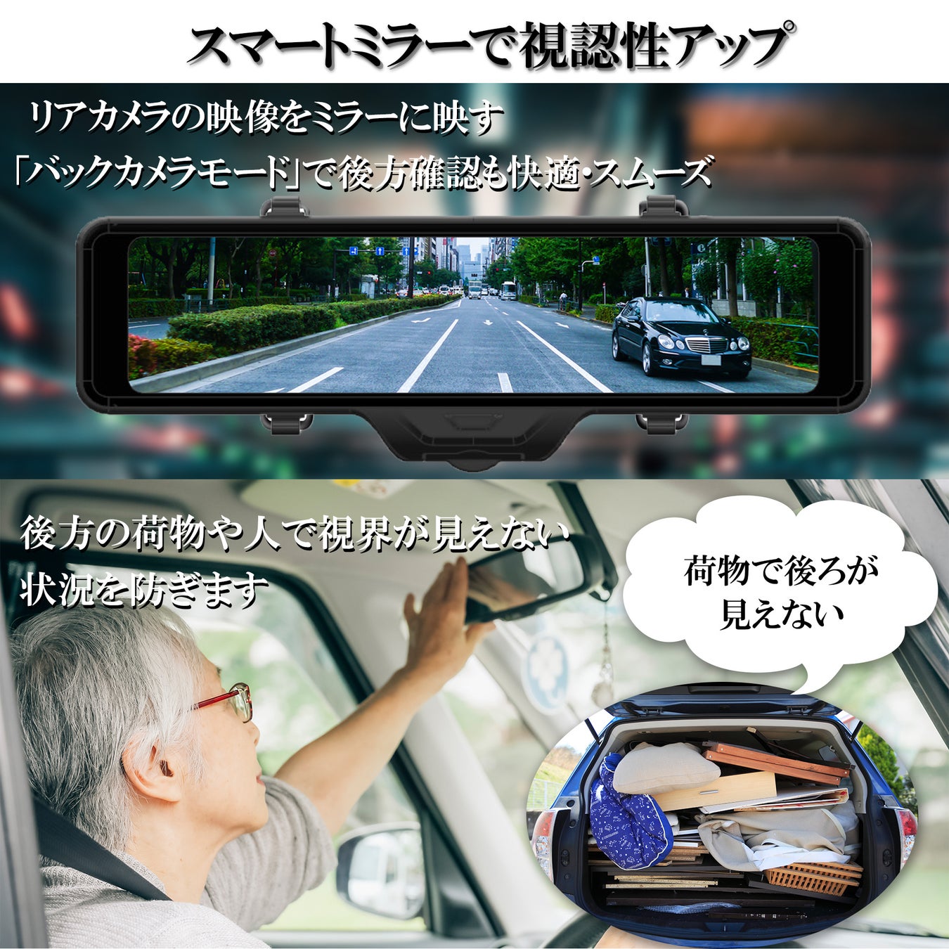 現在スマートミラーは、デジタルバックミラーとして後方の荷物などの死角を大幅に軽減して、安全で快適な運転をサポートします。